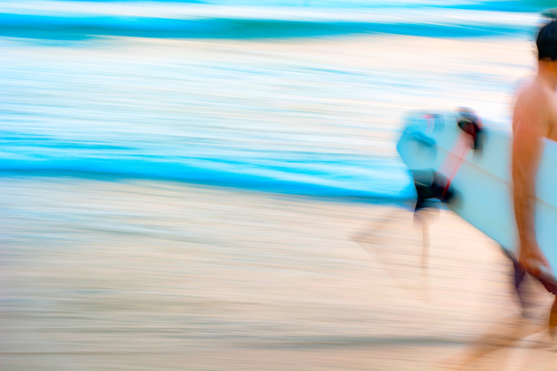 Immerse yourself in the evocative blur of By the Sea #9 a dynamic abstract wallpaper that captures the essence of coastal life. The image conveys the fleeting moment of a surfer in motion, board in hand, heading towards the turquoise embrace of the ocean. Soft, pastel hues blend in a deliberate motion blur, creating a sense of speed and fluidity. The artwork's impressionistic style evokes the sensory experience of the beach – the rush of the waves, the warmth of the sand, and the anticipation of riding the perfect wave. This piece invites you to embrace the freedom and energy of the sea, making it an ideal backdrop for those seeking a calming yet invigorating digital escape. Let the subtle color palette and abstract composition bring a touch of coastal serenity to your screen.