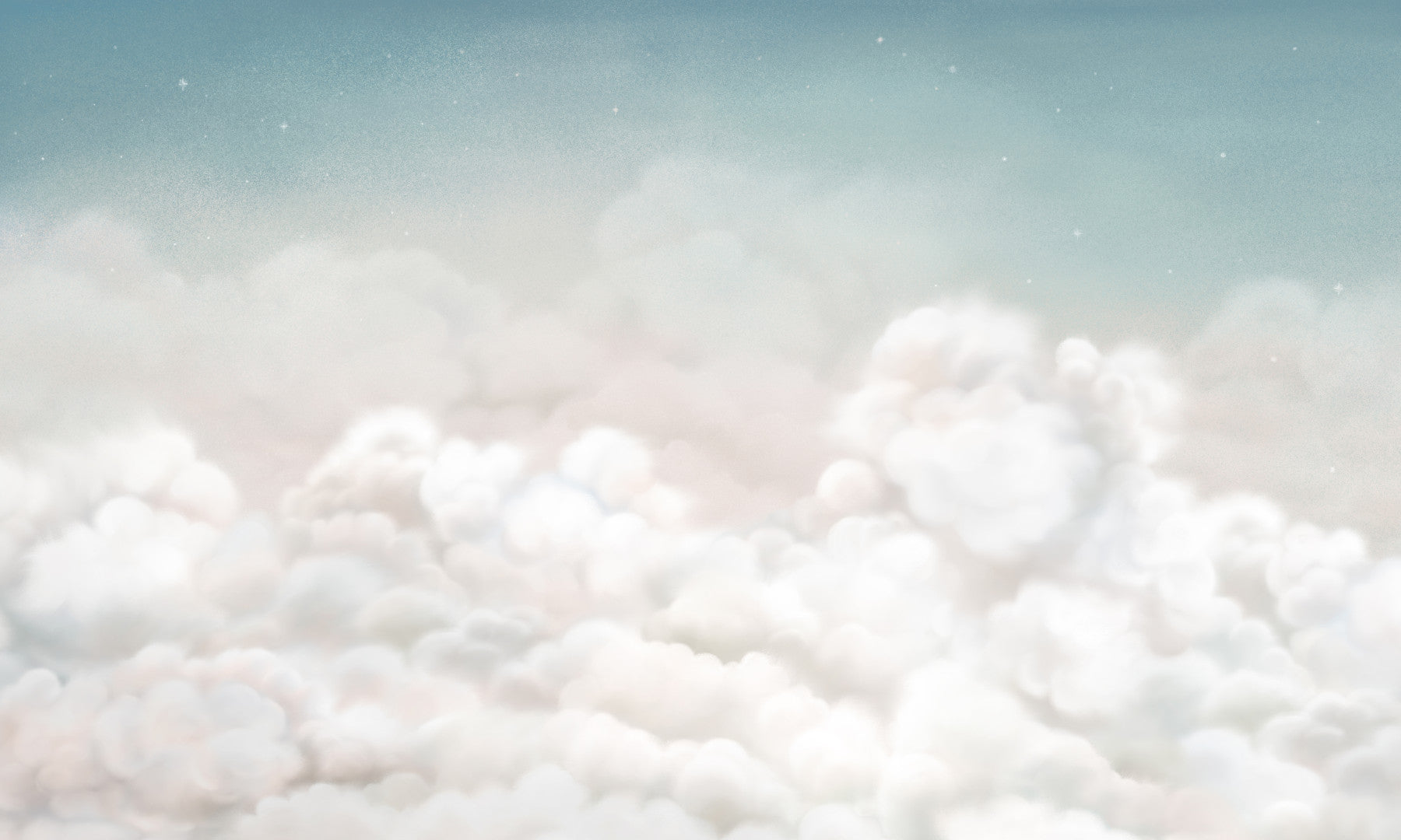 Dream-like sky wall mural showing soft cloud formations in pastel blue