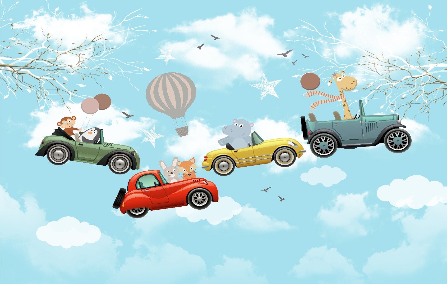 Cartoon Animals in the sky wallpaper mural - Giffywalls