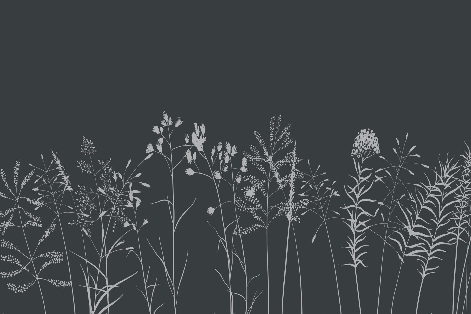 Transform any room with the delicate beauty of this botanical design. Light gray floral silhouettes elegantly contrast the dark charcoal foundation. Perfect as wallpaper for walls in living rooms, bedrooms, or hallways. This design adds a touch of nature to interior spaces. With its monochrome color scheme, it easily matches a wide variety of decors and adds a calming ambiance to your interiors.