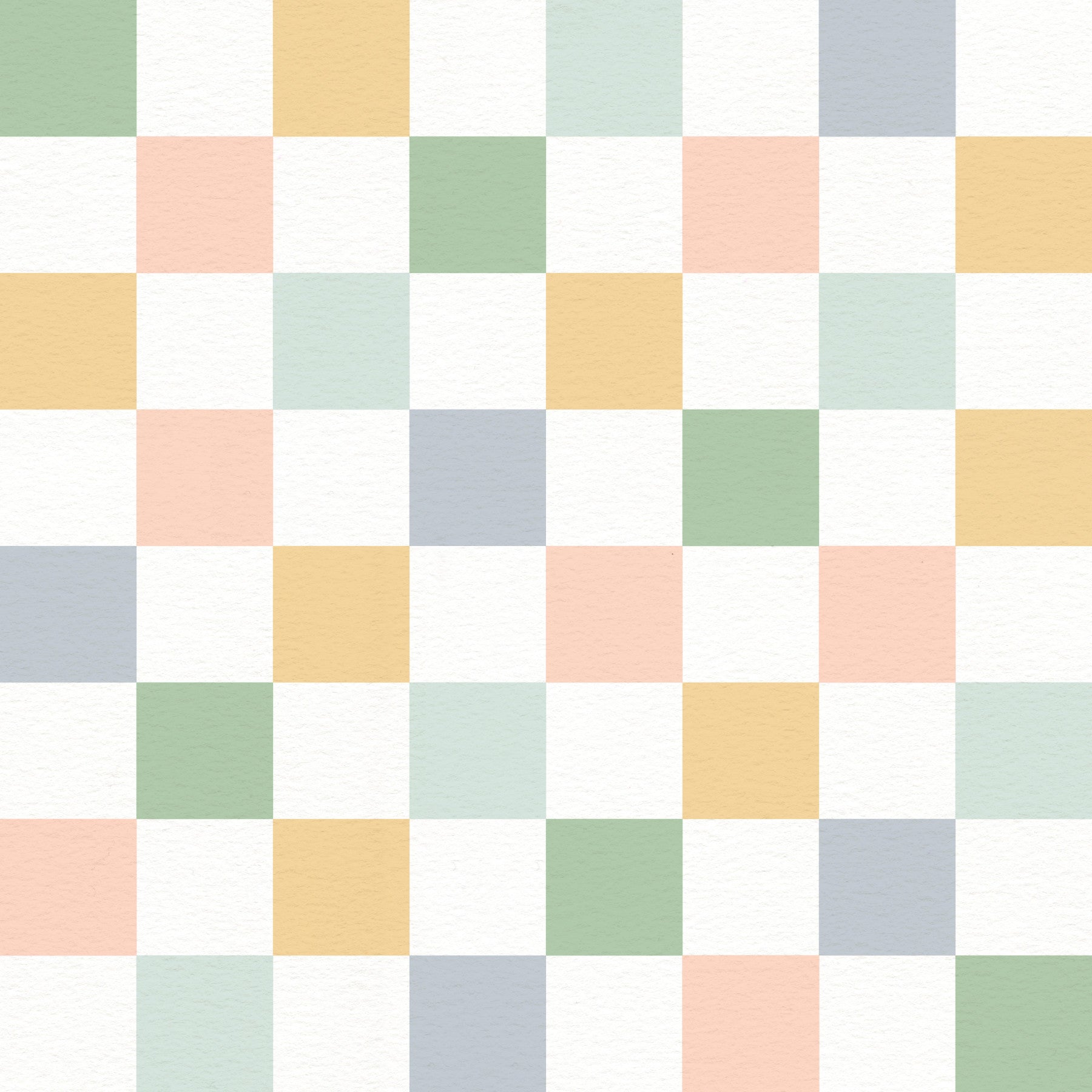This vintage-inspired wallpaper features a charming checkerboard pattern composed of soft, pastel-toned squares. The muted color palette of blush pink, sage green, light blue, and creamy yellow creates a calming and sophisticated atmosphere. Each square possesses a subtle textured effect, adding depth and visual interest to the classic geometric design. Perfect for adding a touch of retro elegance to any digital device, this wallpaper offers a balanced blend of simplicity and style, evoking feelings of serenity and nostalgia.