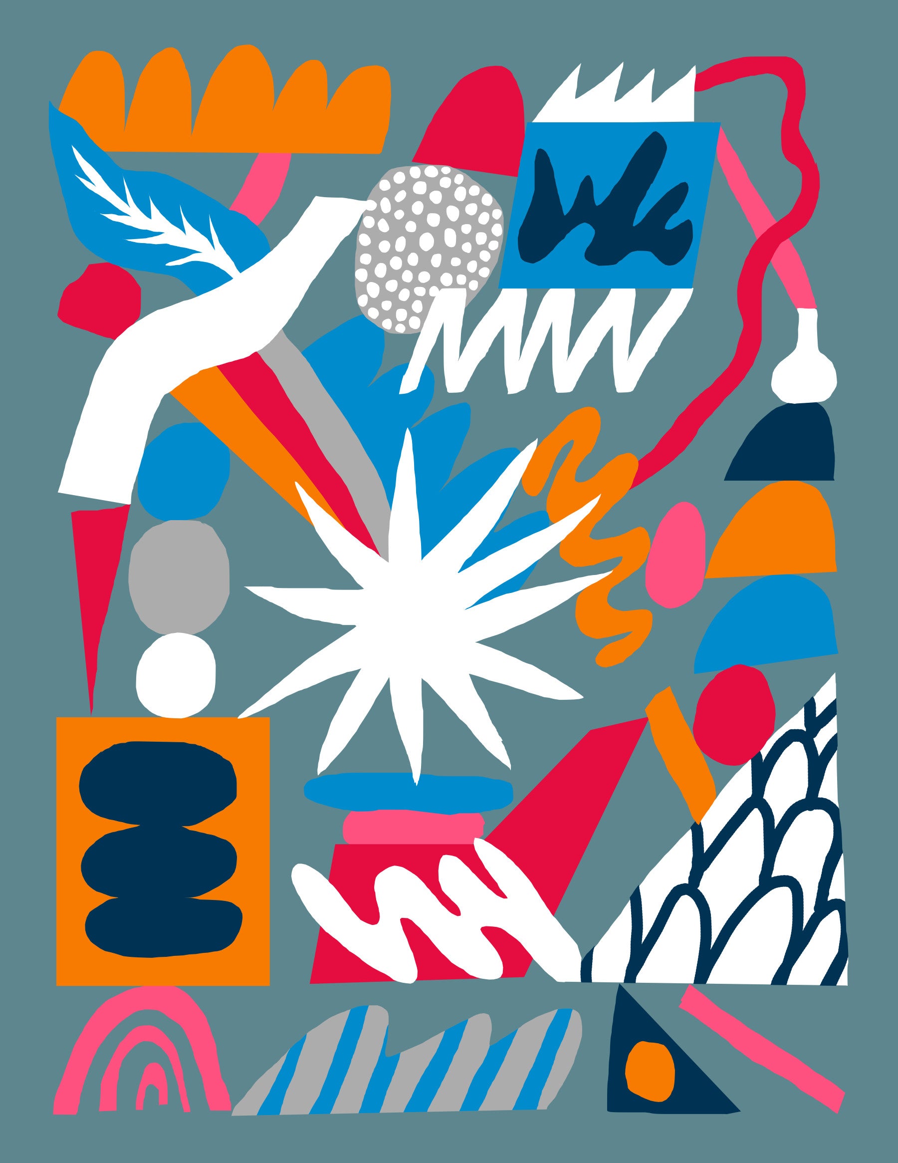 Unleash a burst of vibrant energy with 'Chemistry Explosion'! This captivating wallpaper captures the essence of scientific wonder and artistic flair, presenting a dynamic composition of abstract shapes and bold colors. Imagine the controlled chaos of a laboratory experiment, translated into a visually stunning display. Jagged edges meet fluid curves, creating a delightful tension and a sense of playful exploration. The palette is a carefully curated mix of primary and secondary hues, with splashes of orange, blue, red, and white that pop against a calming grey backdrop. This unique design embodies both the precision of science and the unbridled creativity of art. Perfect for adding a touch of modern sophistication and intellectual intrigue to any space, 'Chemistry Explosion' will ignite your imagination and inspire curiosity every day.