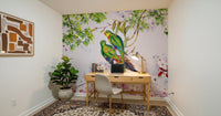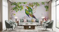 Bring a touch of the tropics to your home with this charming parrot and cherry blossom wallpaper for walls. The vibrant green and blue parrots perch amidst delicate pink and white cherry blossoms, creating a serene and inviting atmosphere. The light background allows the colours to pop, making it ideal for a living room, bedroom, or even a nursery. This design brings a natural element indoors, infusing your space with a sense of calm and beauty. It works especially well in rooms with neutral furniture and décor, adding a focal point that elevates the overall style.