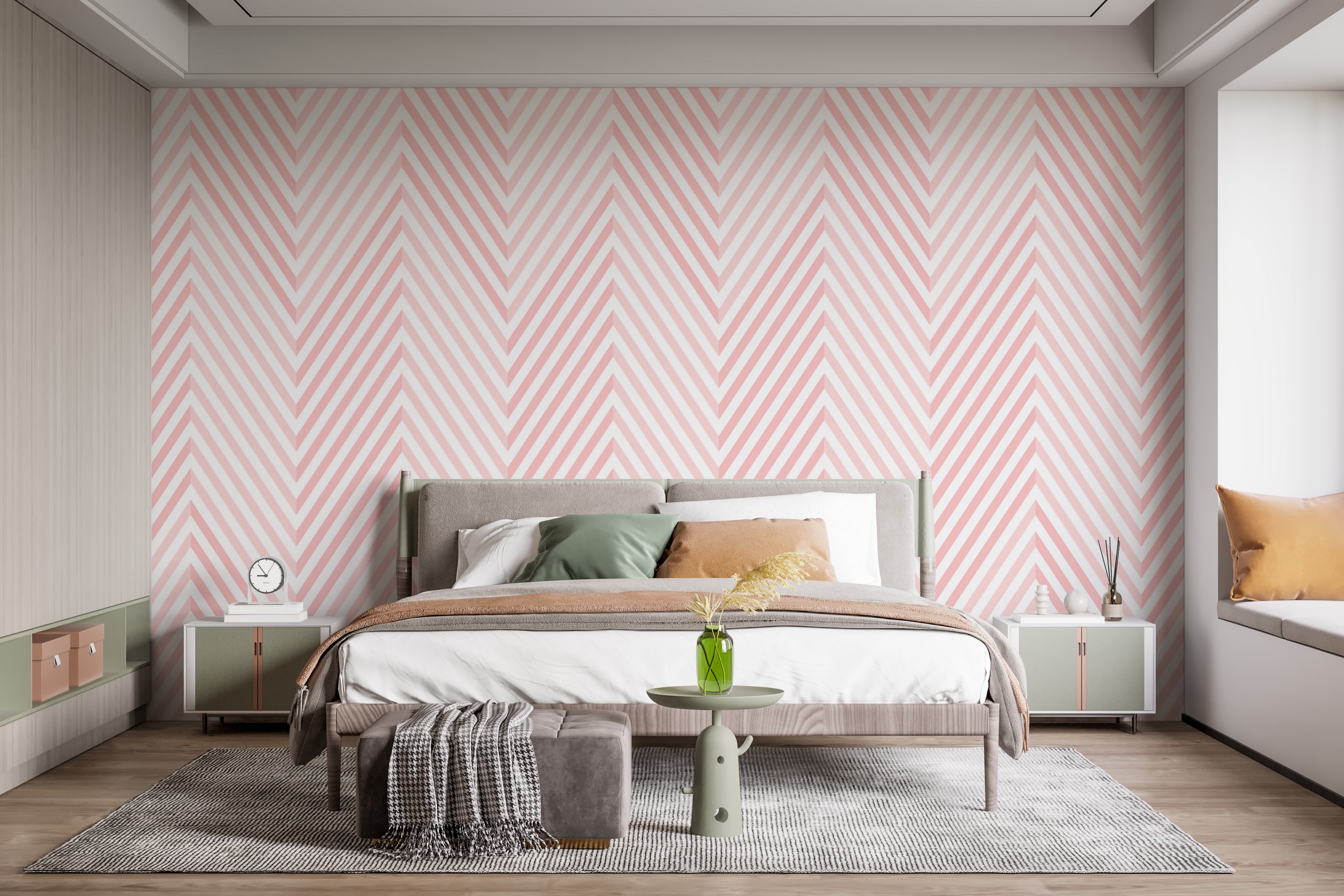 Elevate your space with the Chevron Pink White Geometric Line Wallpaper mural. This wallpaper mural features a striking chevron pattern, blending soft pink and crisp white lines to create a stunning geometric design. Ideal for any room looking for a modern update, this geometric wallpaper mural adds a fresh, contemporary vibe.