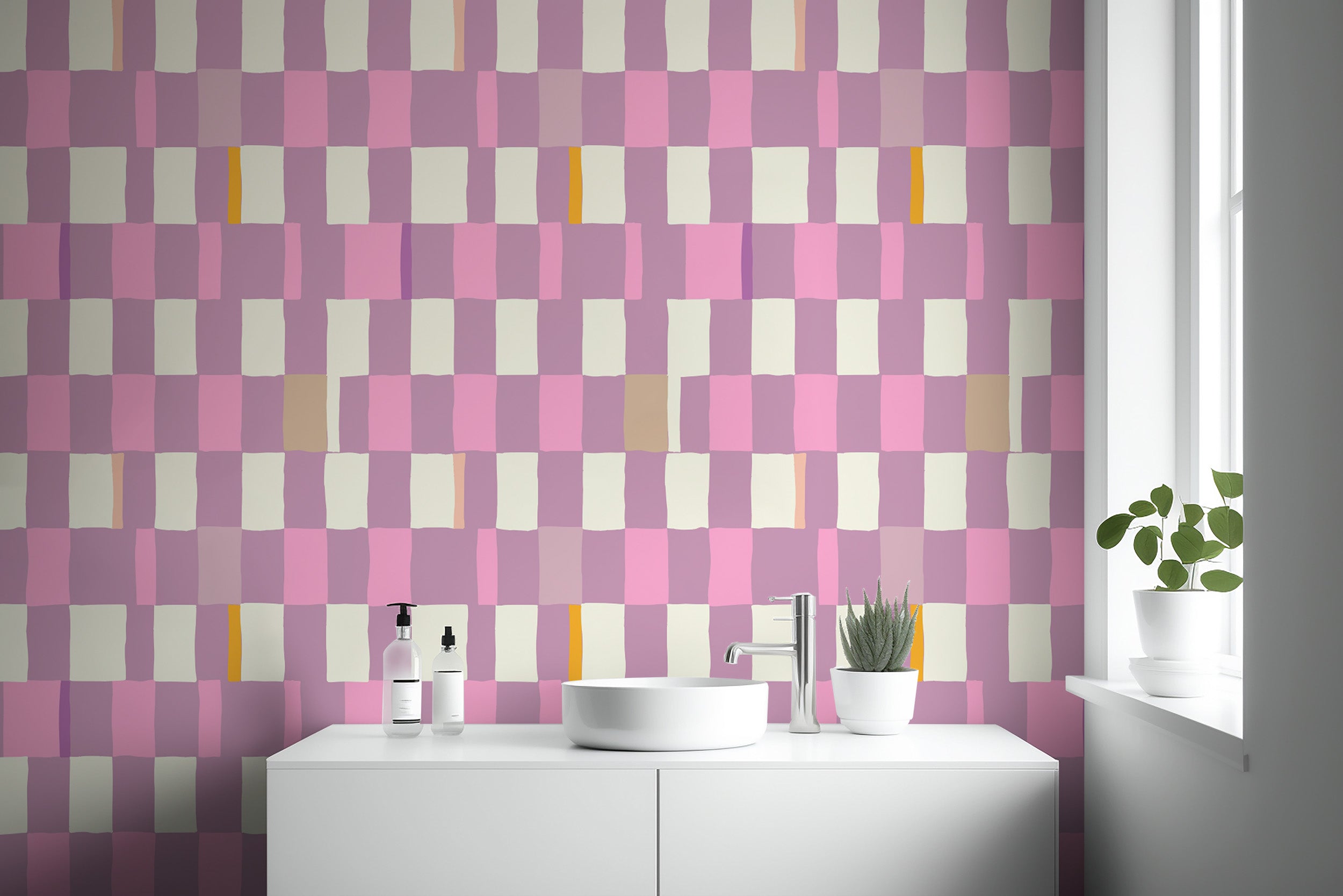 Minimalist wallpaper showcasing a chic mosaic checkerboard pattern.