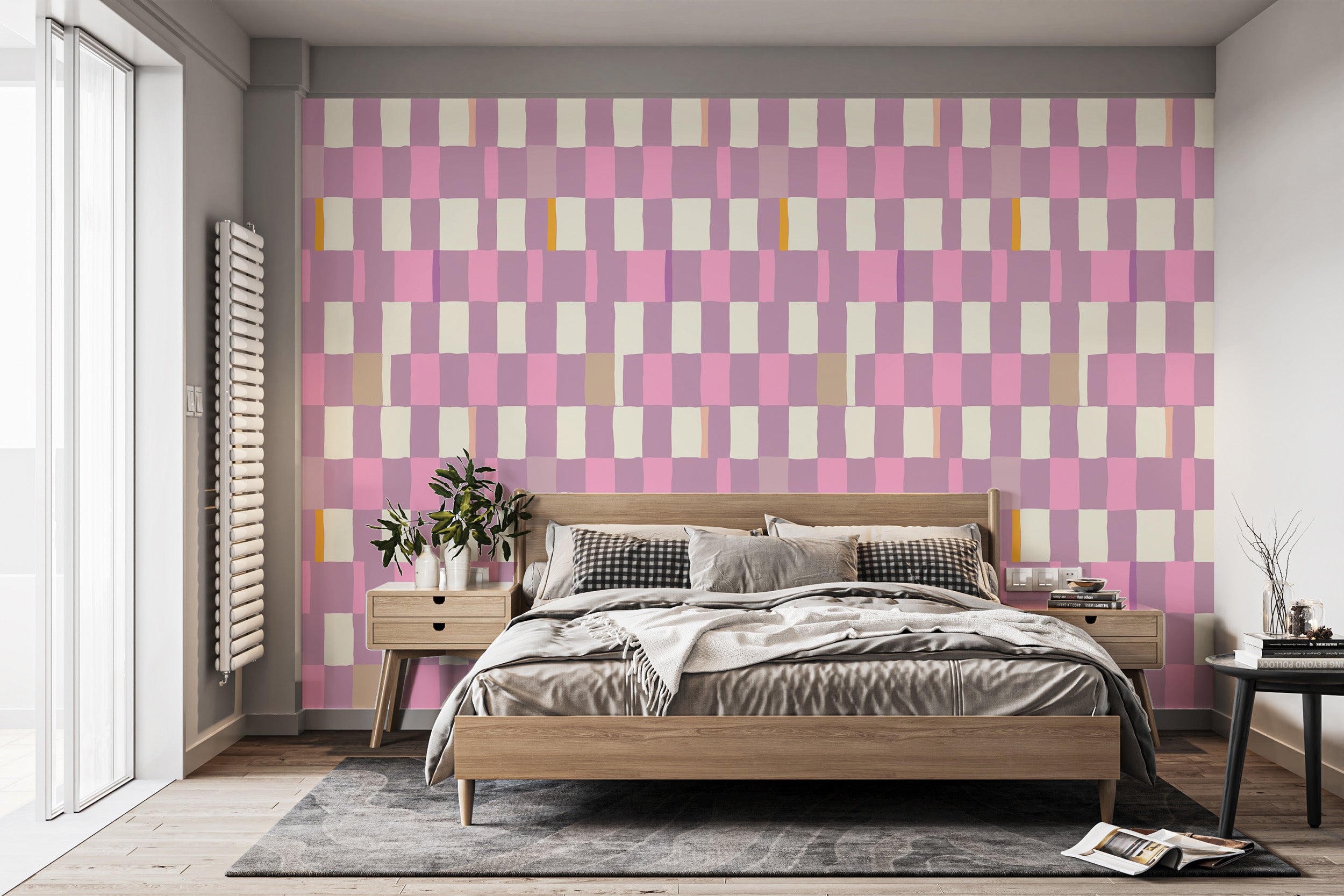 Bold and contemporary mosaic checkerboard wallpaper for walls.