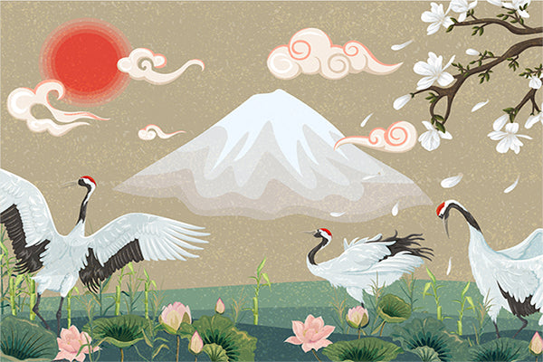 Convert your living space into a haven of tranquility with the Spring Time Mountain Wallpaper Mural. Immerse yourself in the serene sunset, as the beige backdrop infuses calm into your surroundings. Adorned with delicate Chinese calligraphy, clouds, cranes, and flowers emerge gracefully, symbolizing vigilance and good fortune. This trendy Mountains Spring wallpaper wall mural, with its self-adhesive properties, offers both style and convenience. Perfectly suited for bedrooms and living areas, it pairs exquisitely with bright-colored furniture to create a striking contrast. Embrace this Spring Removable Wallpaper and invite a breath of fresh air into your home.