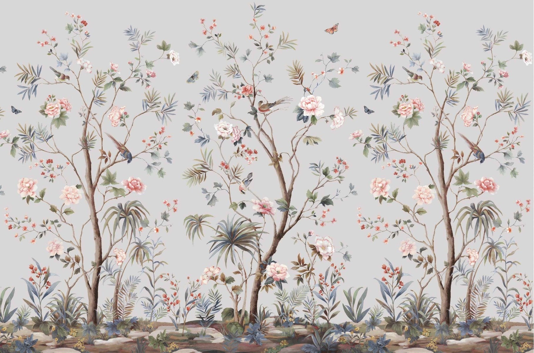 Chinoeserie Floral design Wallpaper Mural - Giffywalls
