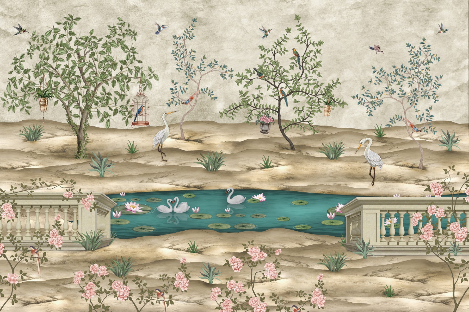 Chinoiserie Garden & Swan Pond Wall Mural
