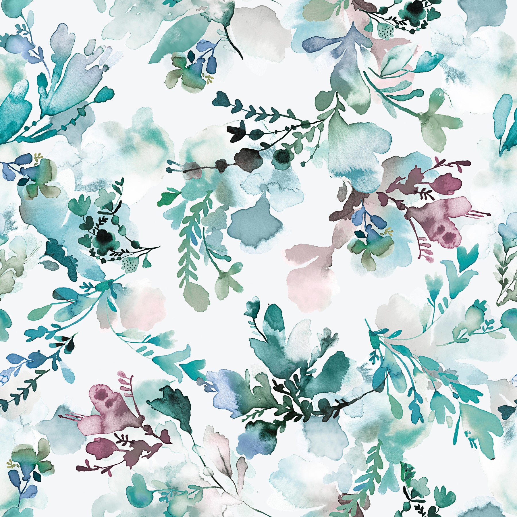 Embrace serenity with this "Chinoiserie Watercolor Flowers" wallpaper. Loose, expressive watercolor blooms in calming shades of teal, seafoam, and dusky rose dance across a soft white background. The ethereal, almost abstract floral forms evoke a sense of tranquil elegance, reminiscent of classic Chinoiserie design but with a modern, painterly twist. Perfect for creating a soothing and sophisticated atmosphere in any room, this wallpaper offers a delicate balance between artistic freedom and timeless style. The subtle color palette and free-flowing brushstrokes contribute to a peaceful and calming ambiance.