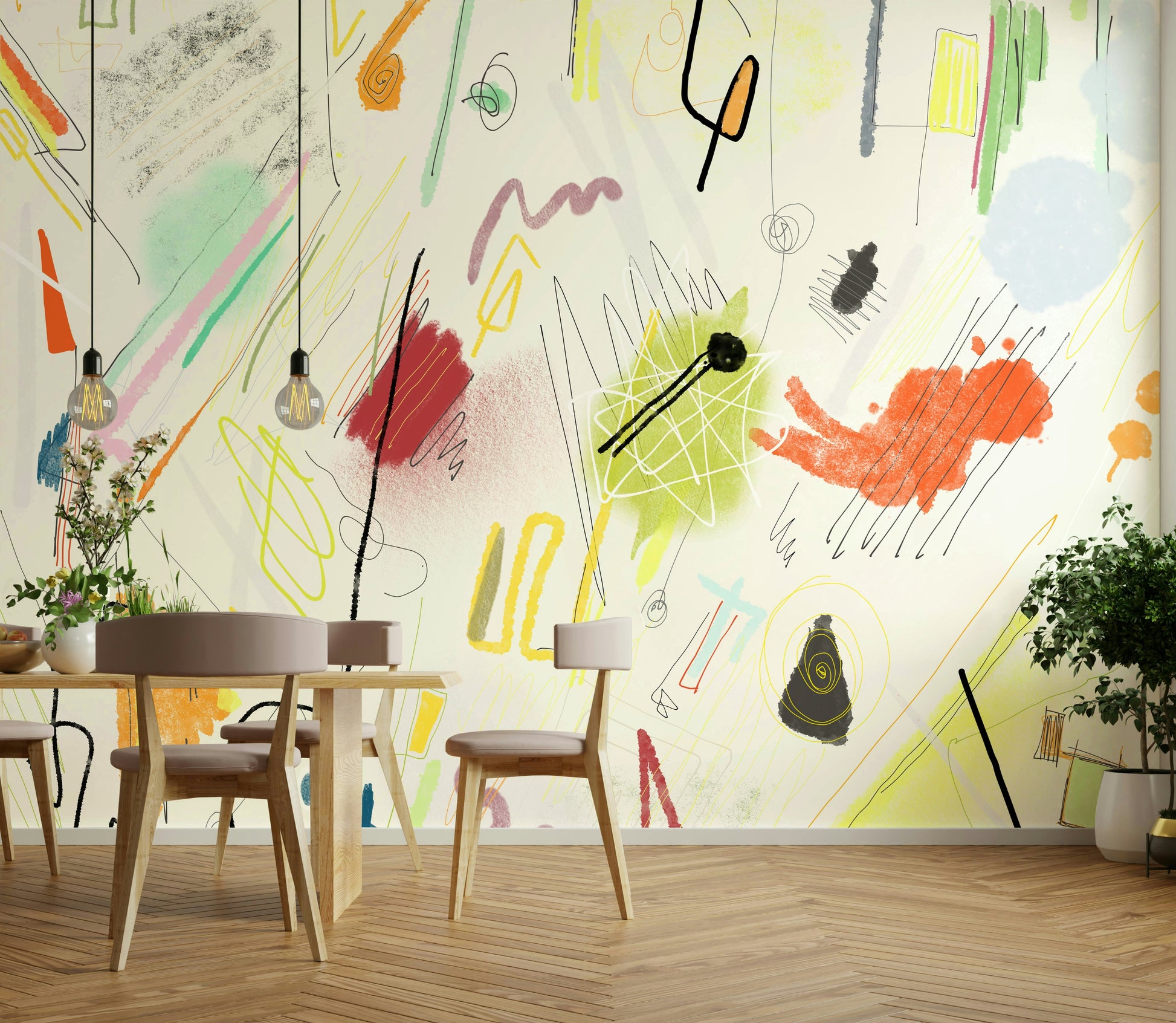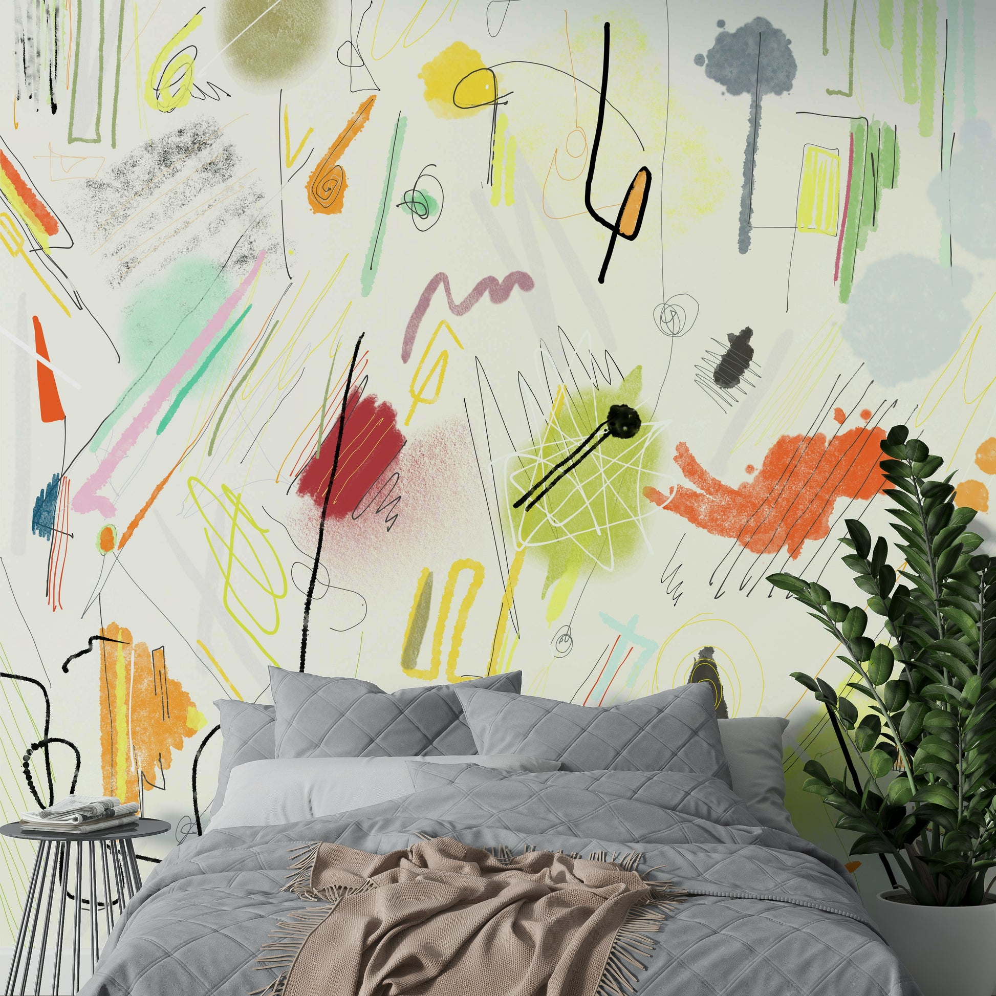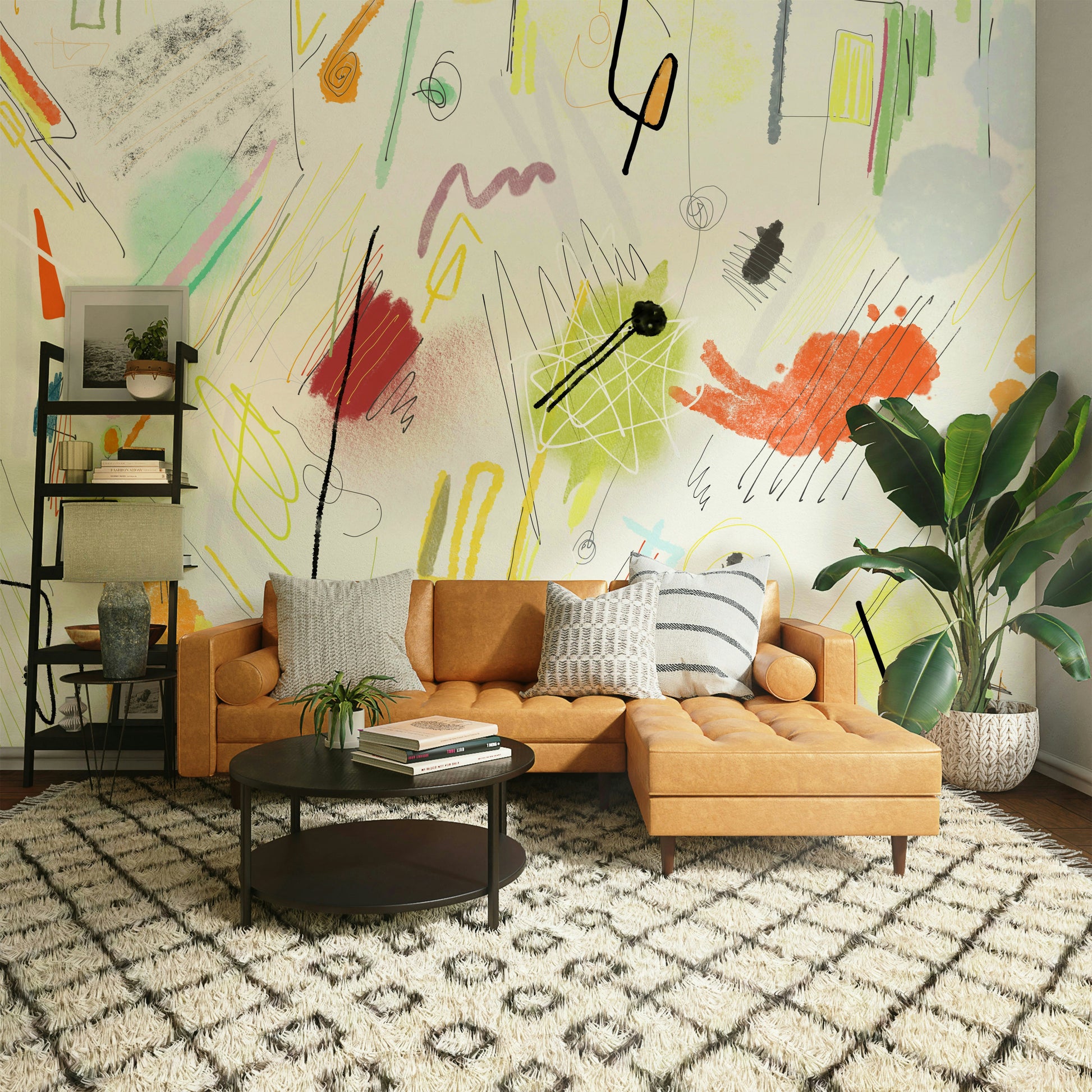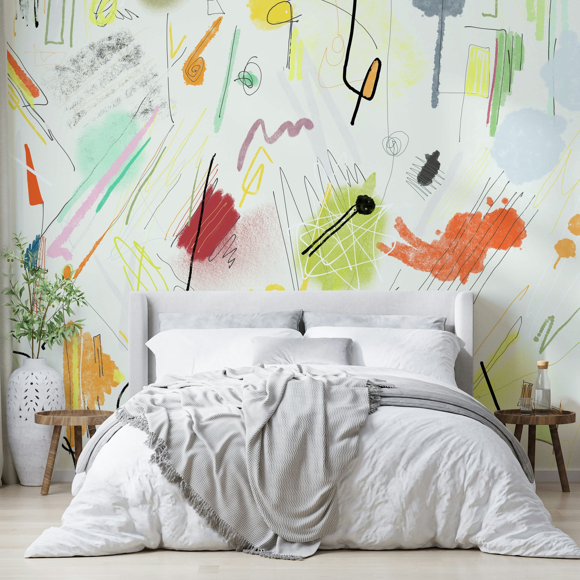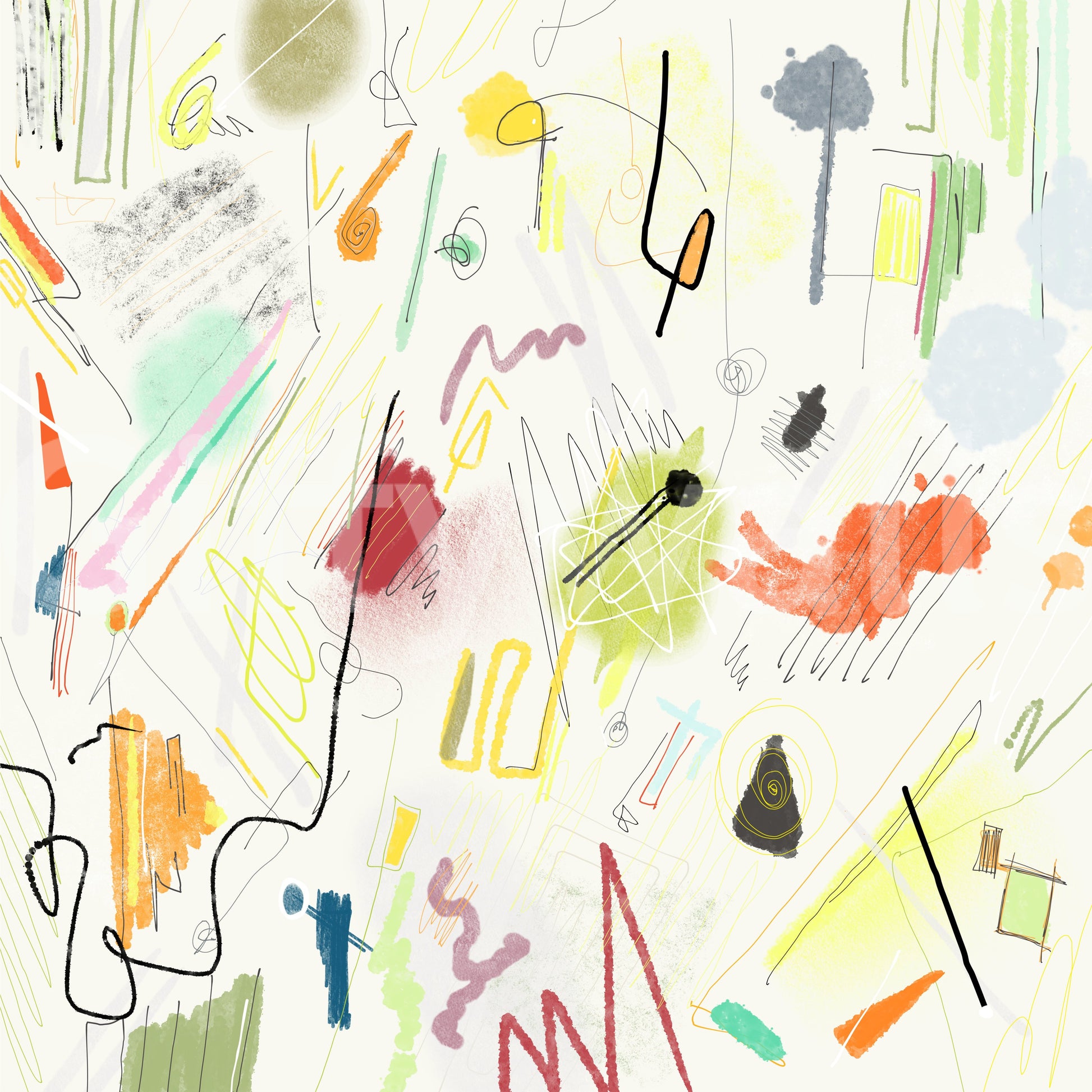 Dive into the vibrant chaos of Cianfrusaglia 04, a captivating abstract wallpaper. This design explodes with a playful collision of hand-drawn lines, textured brushstrokes, and bold color blocks. Soft pastels mingle with fiery oranges and reds, creating a dynamic and energetic mood. The seemingly random arrangement of shapes and marks evokes a sense of joyful spontaneity, perfect for adding a unique and artistic touch to your digital space. The layering of elements, from delicate scribbles to substantial color washes, contributes to a visually rich and engaging experience. Let the energetic spirit of 'Cianfrusaglia 04' invigorate your screen.