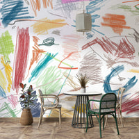 Dive into the vibrant chaos of Cianfrusaglia V2, a wallpaper bursting with energy. Loose, expressive crayon strokes in a spectrum of pastel and earthy tones dance across a crisp white background. The seemingly random arrangement of lines, swirls, and textured blocks creates a captivating visual rhythm. This abstract design evokes a playful yet sophisticated mood, perfect for those who appreciate art that's both whimsical and thought-provoking. 'Cianfrusaglia V2' is a celebration of color and texture, adding a touch of artistic freedom to any digital device.