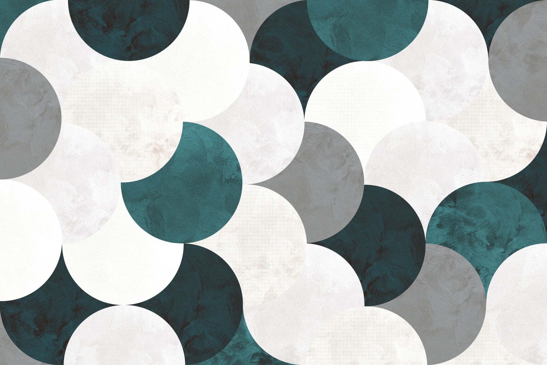 Immerse yourself in the modern elegance of 'Circle Abstract Wall 03', a captivating wallpaper design. This abstract piece features a harmonious blend of intersecting circles, creating a visually dynamic and intriguing pattern. The colour palette showcases a sophisticated combination of deep teal, soft greys and crisp whites. Each circle possesses a unique textured surface, adding depth and tactile appeal to the composition. The interplay of light and shadow across the different hues enhances the visual complexity and creates a subtle sense of movement. Perfect for creating a contemporary and stylish atmosphere, 'Circle Abstract Wall 03' will add a touch of modern art to any space. Whether it's a living room, office or bedroom, this wallpaper serves as a focal point, infusing the room with a refined and artistic ambiance.