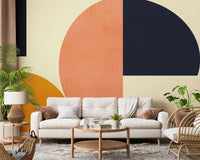 Enhance your space with this geometric wallpaper, showcasing circles and rectangles with a warm, inviting colour scheme. The combination of peach, yellow, and navy creates a balanced visual. It's an exceptional wallpaper for walls in areas like the entryway, study, or lounge. The design delivers character and warmth, making it suited to both modern and transitional interiors. Its colour palette brings a touch of sophistication. It's a selection to make any room more inviting and stylish.