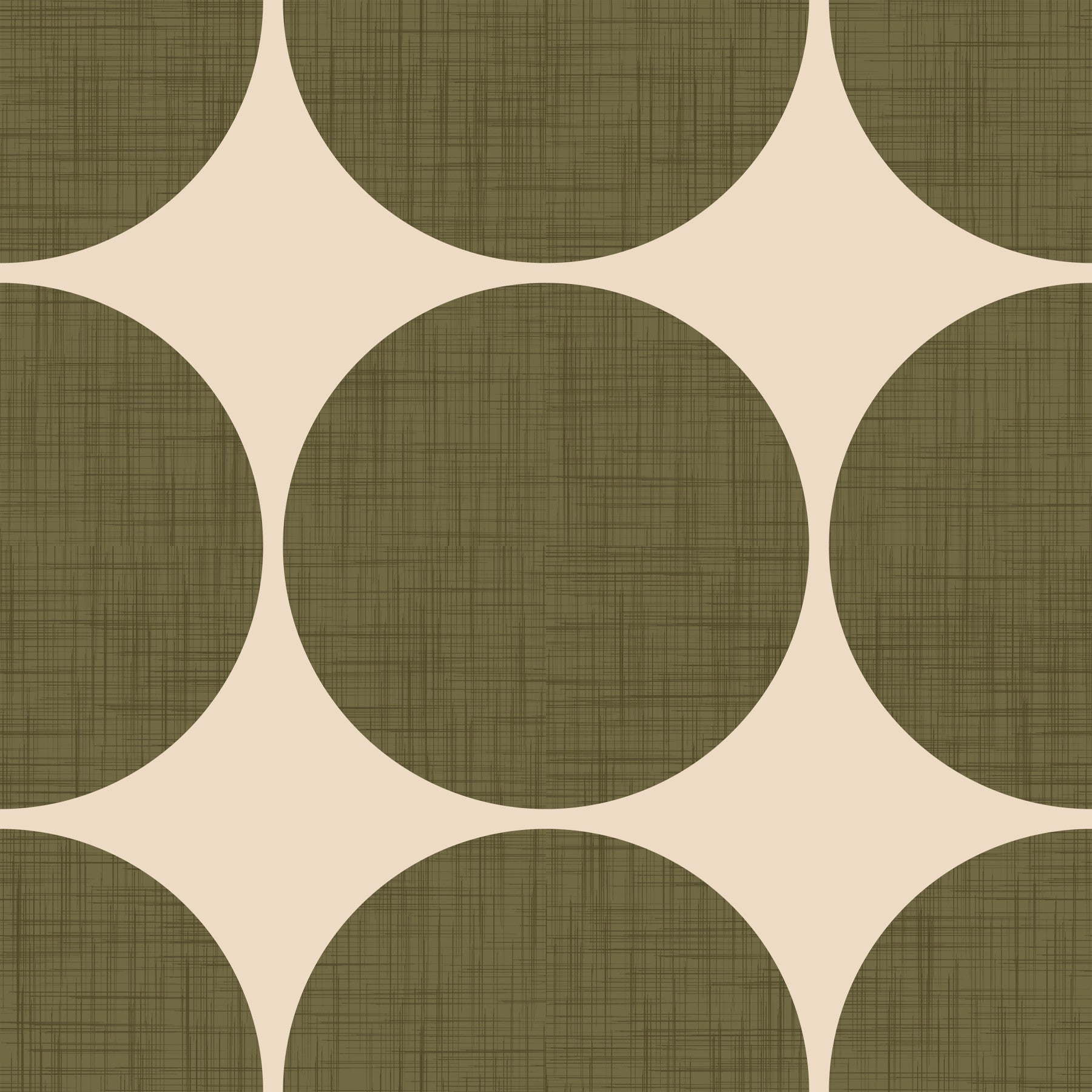 Simple geometric motif featuring earthy olive circles contrasted against a beige background