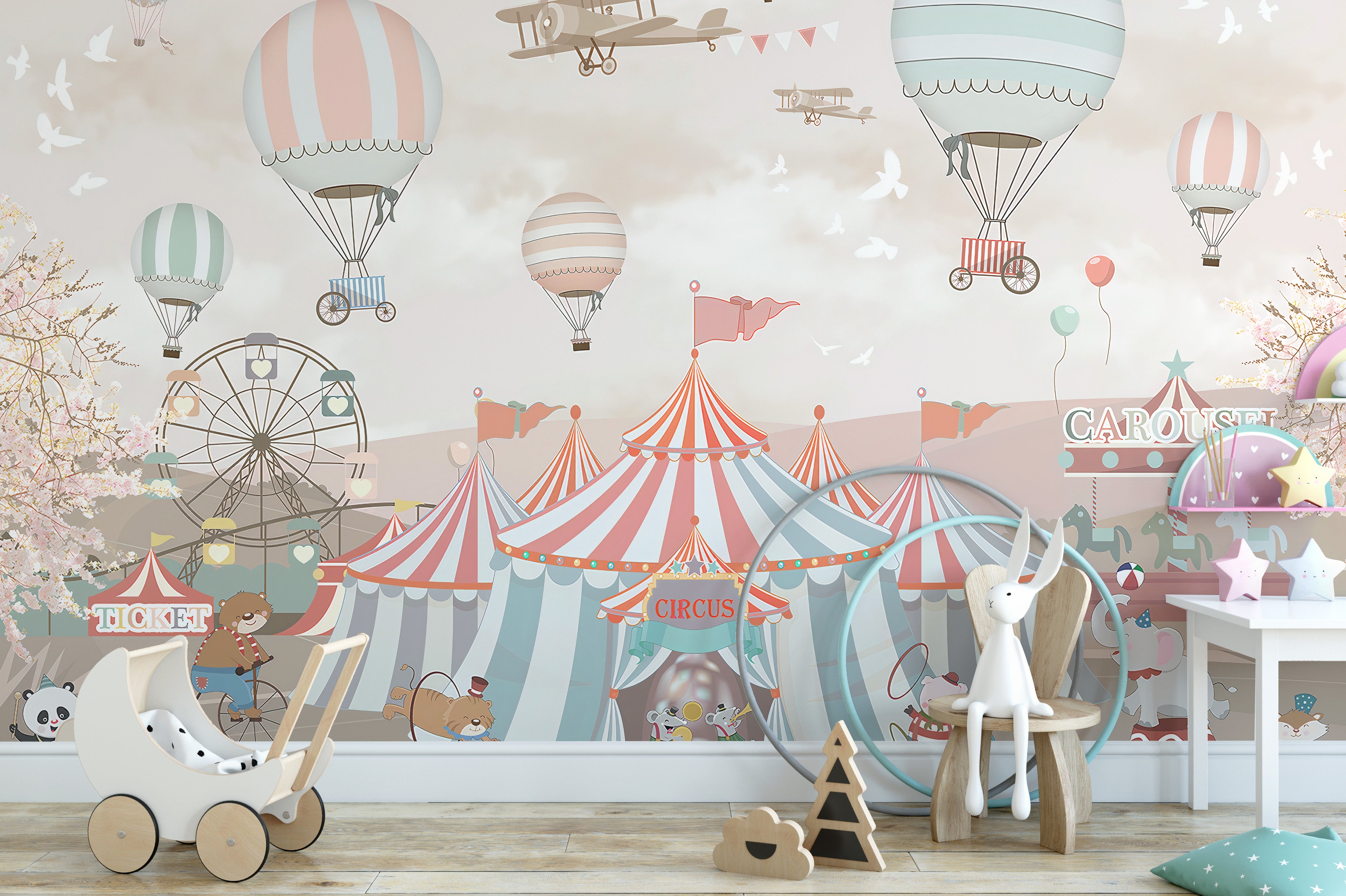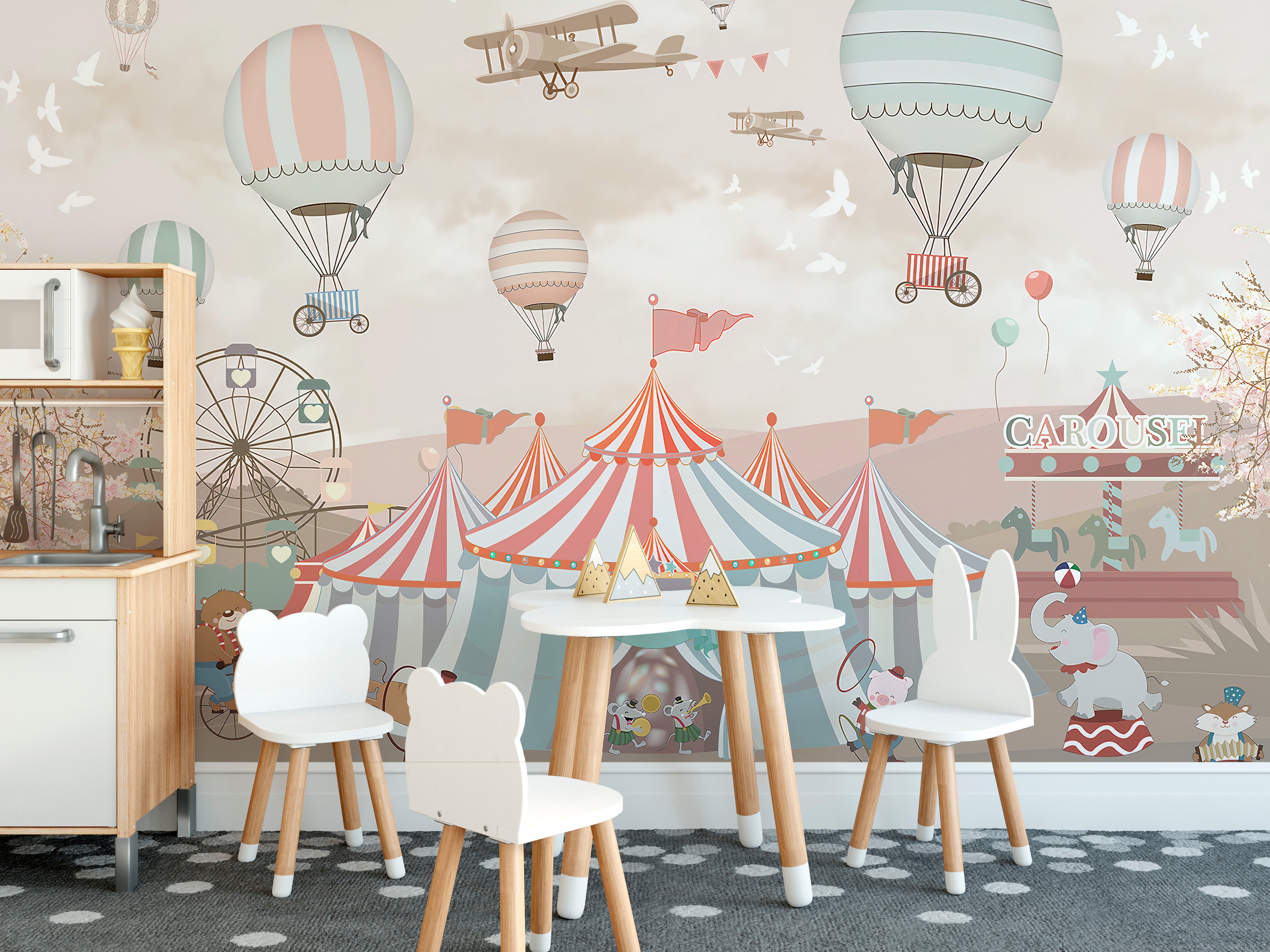 Creating a magical wonderland for your child's room is made easy with nursery wallpaper like circus wallpaper. This whimsical decor element will transport your child to a world filled with vibrant colors and playful animals. Whether you opt for a bold and busy circus mural or a simple circus-themed wallpaper, it's sure to stimulate your child's imagination and creativity. A circus-inspired wallpaper is the perfect addition to any kid's room, bringing a fun and exciting energy to the space. So why not take this opportunity to make their room a magical wonderland that they will never forget?