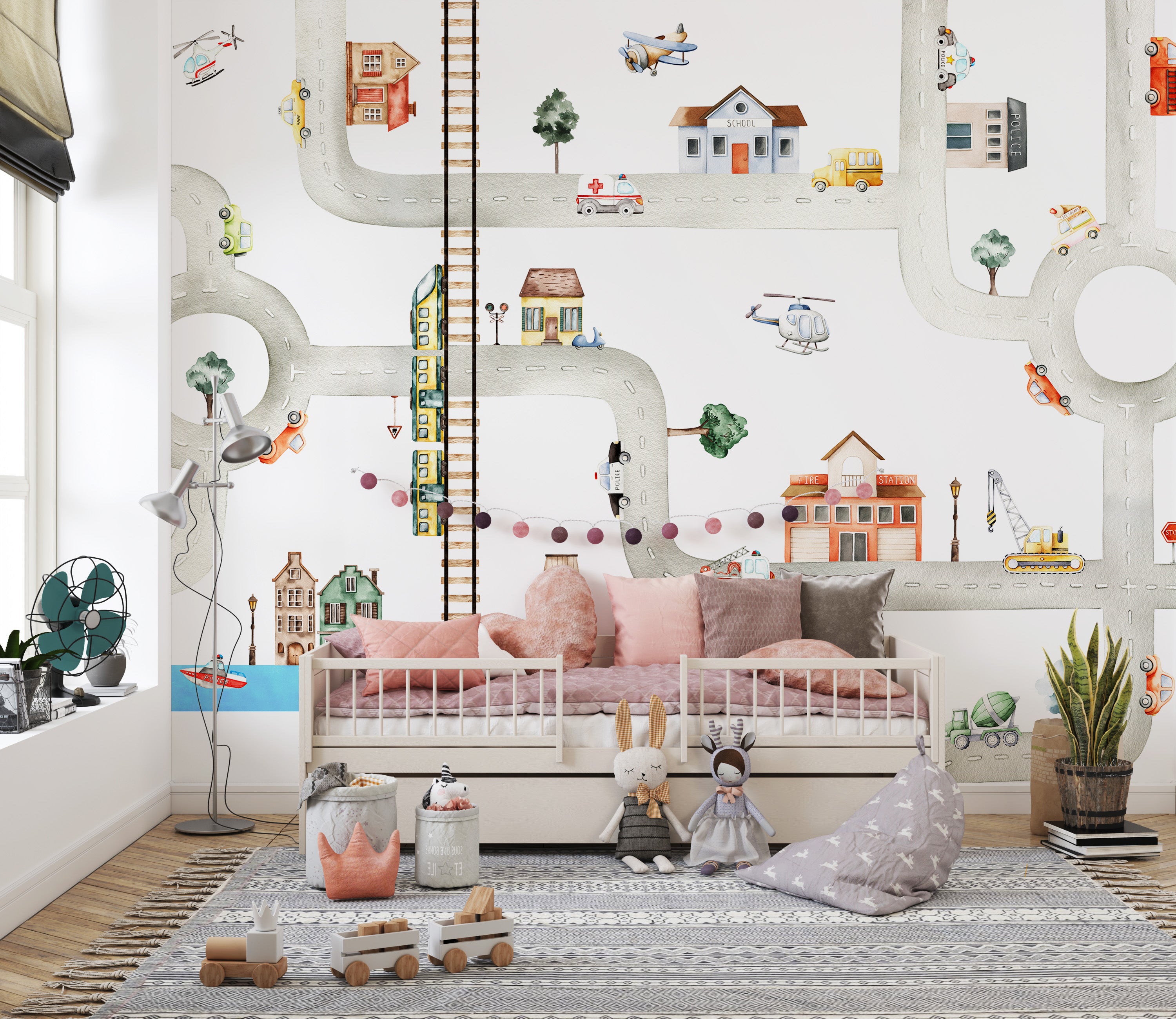 City of Vehicles Wallpaper for Kids Room - Giffywalls