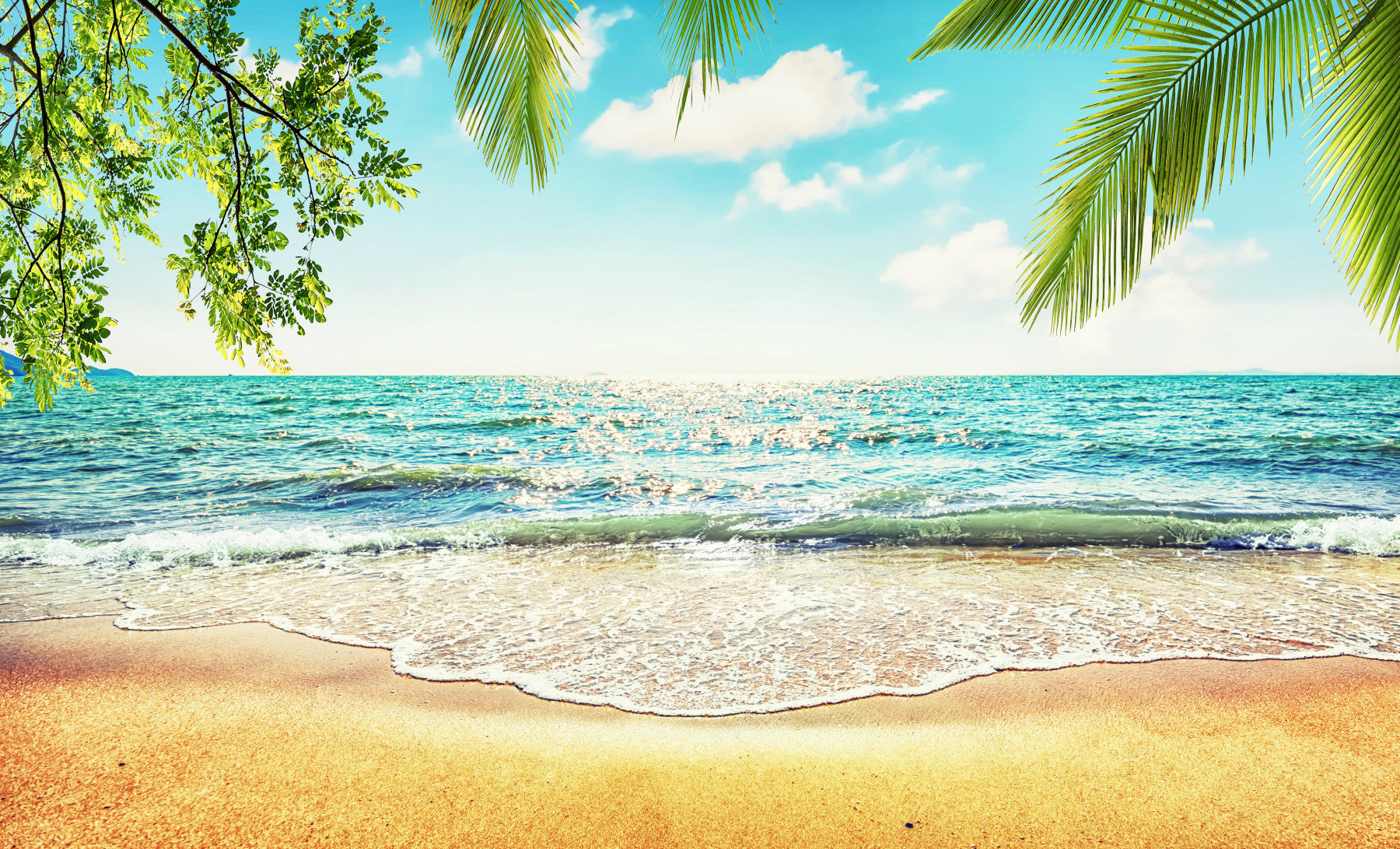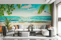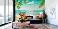 Bring the tranquility of the ocean to your home with this vibrant wallpaper for walls. This design features a stunning beach scene with turquoise water, golden sand, and lush palm trees. The clear blue sky and sparkling sunlight evoke a sense of peace and relaxation. Ideal for creating a serene atmosphere in living rooms, bedrooms, or bathrooms, this wallpaper transforms any space into a coastal retreat. The colours complement interiors with natural light, enhancing the feeling of spaciousness and calm.