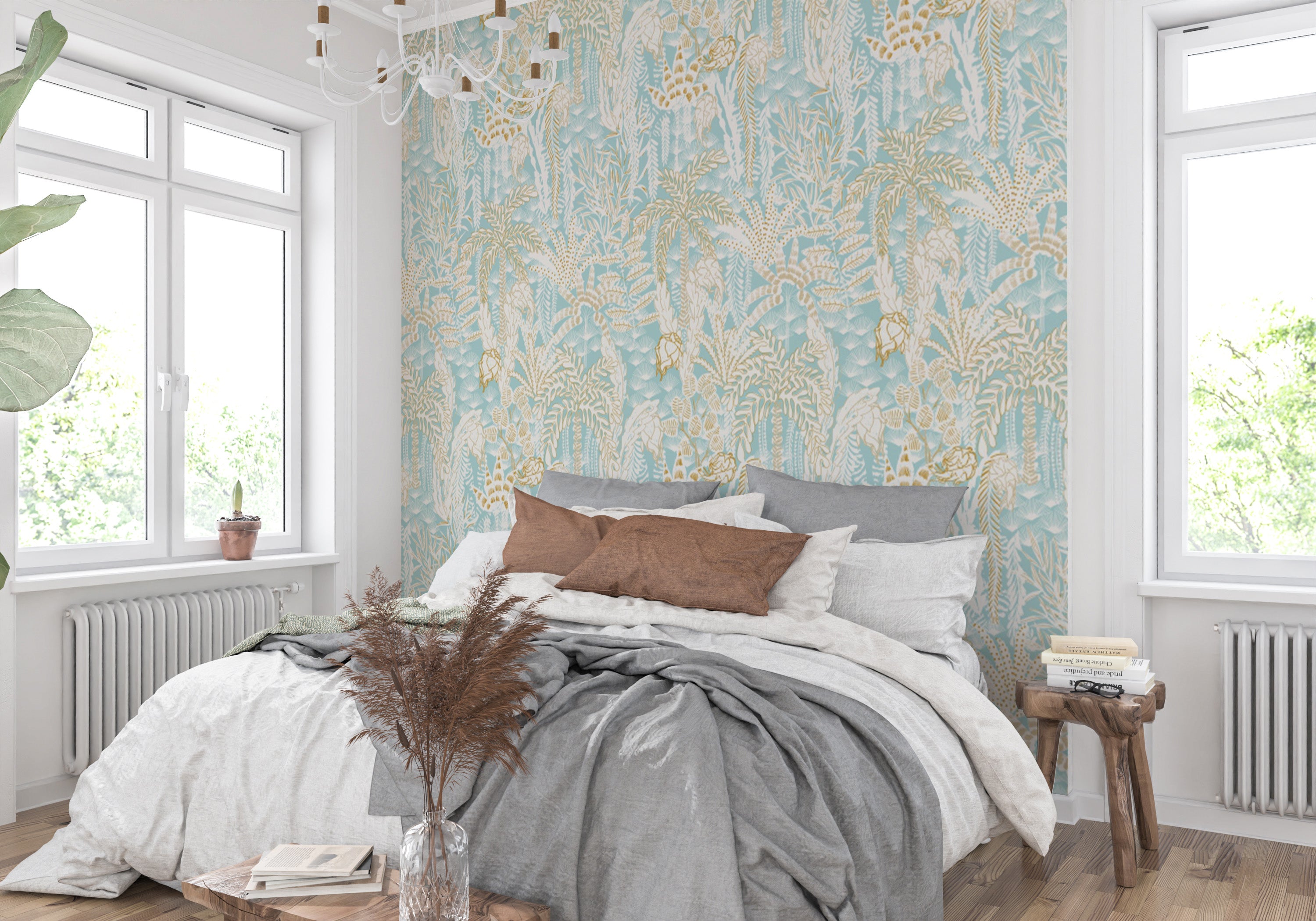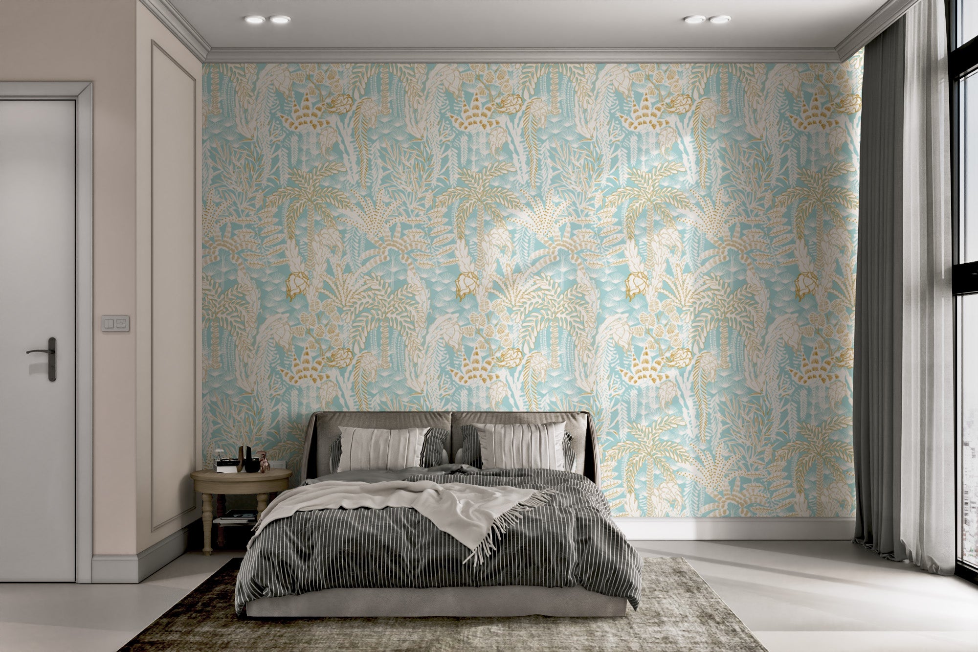 Escape into a serene oasis with our Coastal Breeze Floral Wallpaper, a harmonious symphony of nature's tranquility. Immerse yourself in the subtle elegance of soft, aqua hues, where the delicate dance of golden florals interweaves with lush, verdant foliage. This wallpaper invites a breath of fresh air into any space, creating a tranquil coastal ambiance that soothes the soul. Perfect for transforming your walls into a breezy seaside retreat, our floral wallpaper marries the timeless beauty of florals with the refreshing charm of a seaside scape. Adorn your home with this enchanting design and let the calming energy of the coast wash over you.