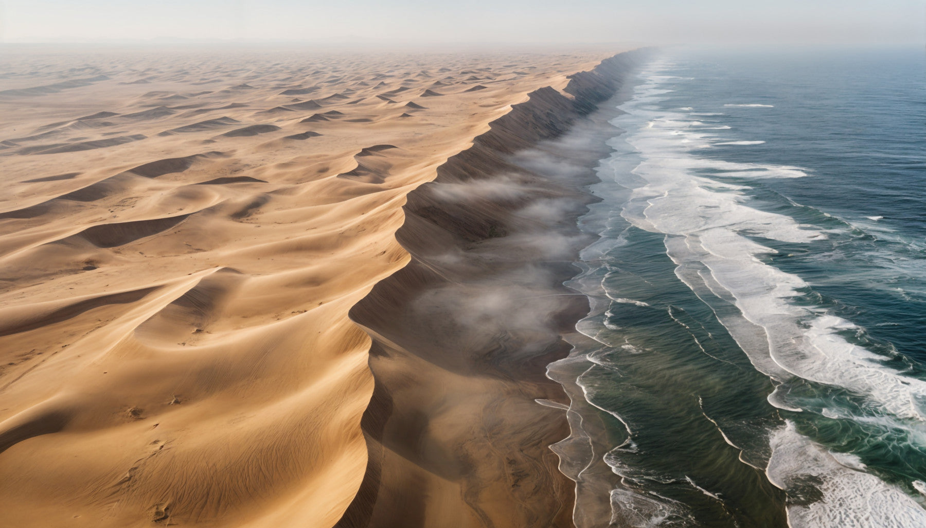 This wallpaper invites you to explore where the desert meets the sea. Notice the striking contrast between the sand dunes and the ocean waves. Earthy browns and deep blues create a calming atmosphere. The unique design makes a statement in any space, from a modern living room to a tranquil bedroom. Consider this wallpaper for walls if you desire a focal point. It elevates interiors with its captivating scenery and balanced composition.
