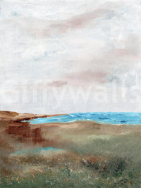 This abstract landscape wallpaper captures the tranquil beauty of a coastline under a soft, muted sky. The artist's brushstrokes create a sense of movement in the gentle waves, while the earthy tones of the land and the subtle hues of the sky evoke a feeling of calm and peace. The overall effect is one of serene contemplation, perfect for creating a relaxing and meditative atmosphere in any room. The soft palette of browns, greens, and blues makes it a versatile choice for various interior design styles, adding a touch of understated elegance to your space.
