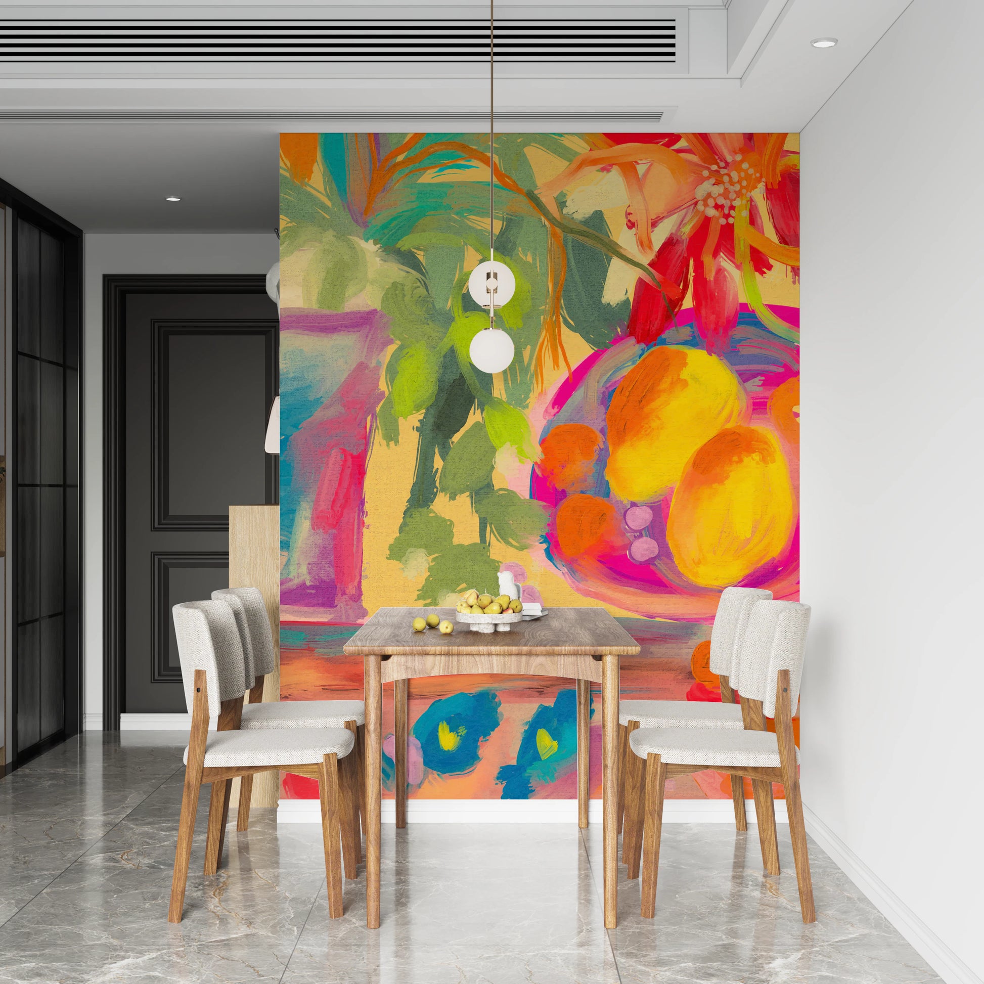 Colorful Abstract Stillife with Flowers and Lemons Wall Mural