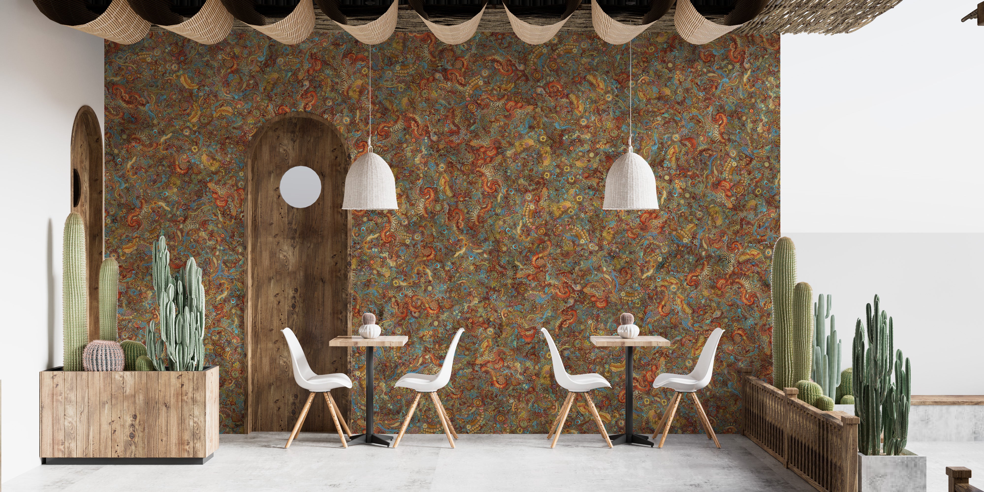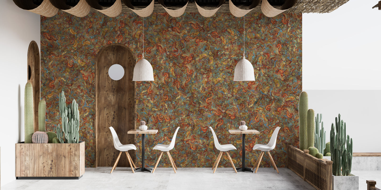 Dive into a microscopic world of wonder with our colorful embroidery dancing microbes wallpaper mural. This unique design transforms tiny microbes into a vibrant tapestry of color and pattern, mimicking the intricate beauty of embroidery. Perfect for adding a splash of color and a touch of the unexpected to any room, this colorful wallpaper is a celebration of the unseen world around us. Ideal for those who appreciate the beauty in the details and the whimsy of nature’s smallest creations, let this mural inspire curiosity and a sense of playful exploration.