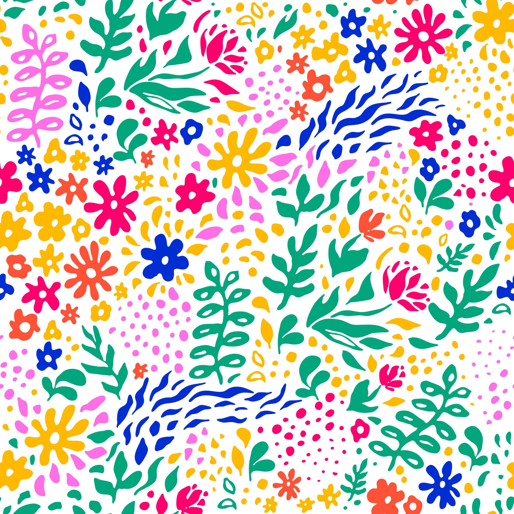 Invite a burst of happiness into your home with this vibrant wallpaper for walls. Featuring playful flowers and leaves in bold pink, yellow, blue, and green, this design exudes a modern and cheerful style. The lively pattern energizes living rooms, kids' rooms, or dining areas. Transform any space into a joyful haven with its captivating charm. Let this bright wallpaper make a positive statement and bring fresh energy to your home.
