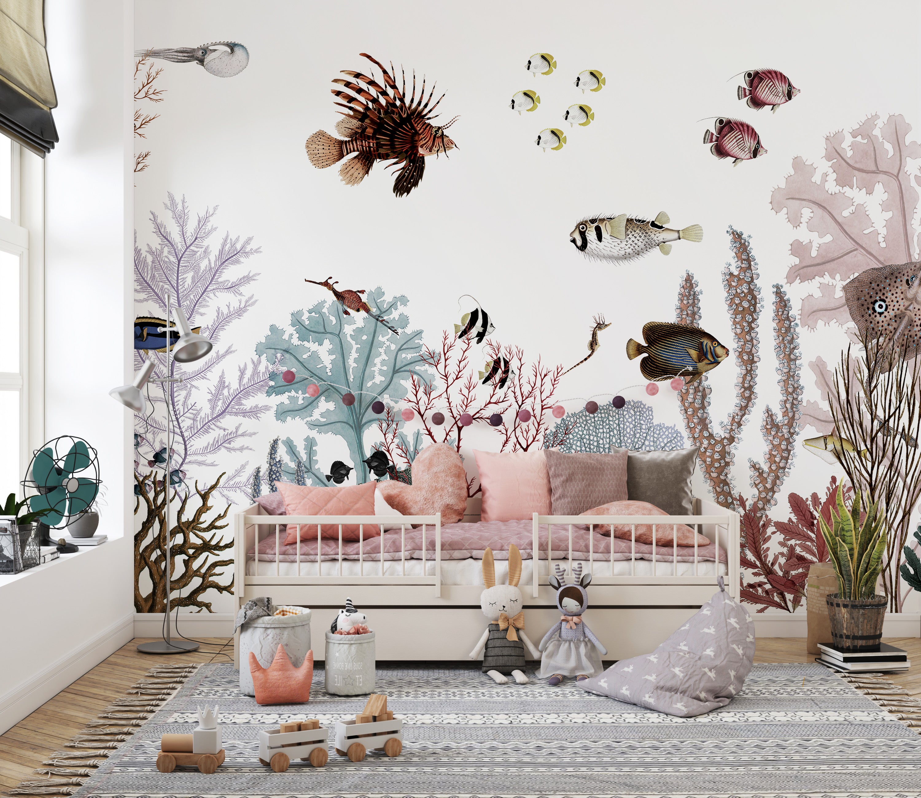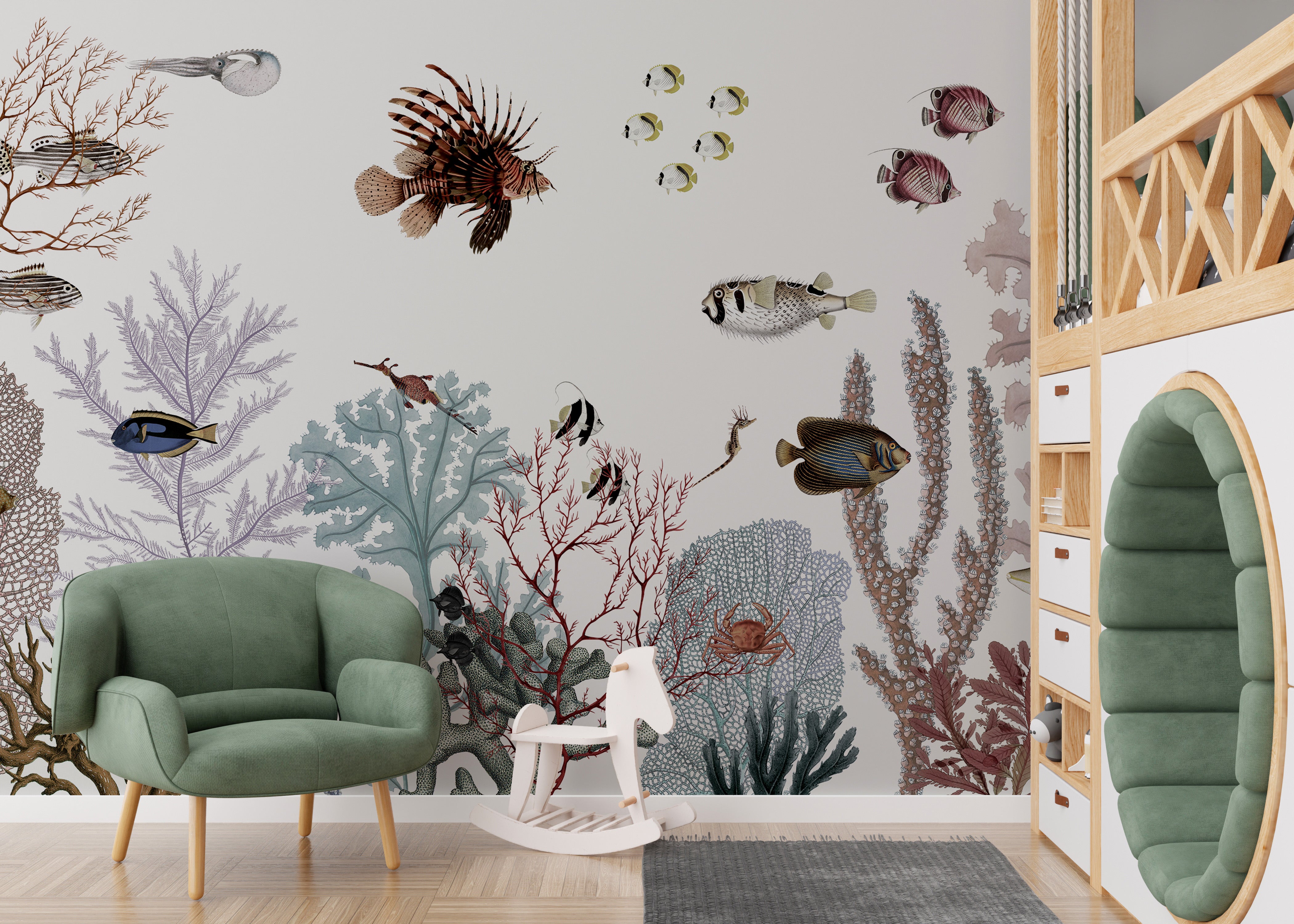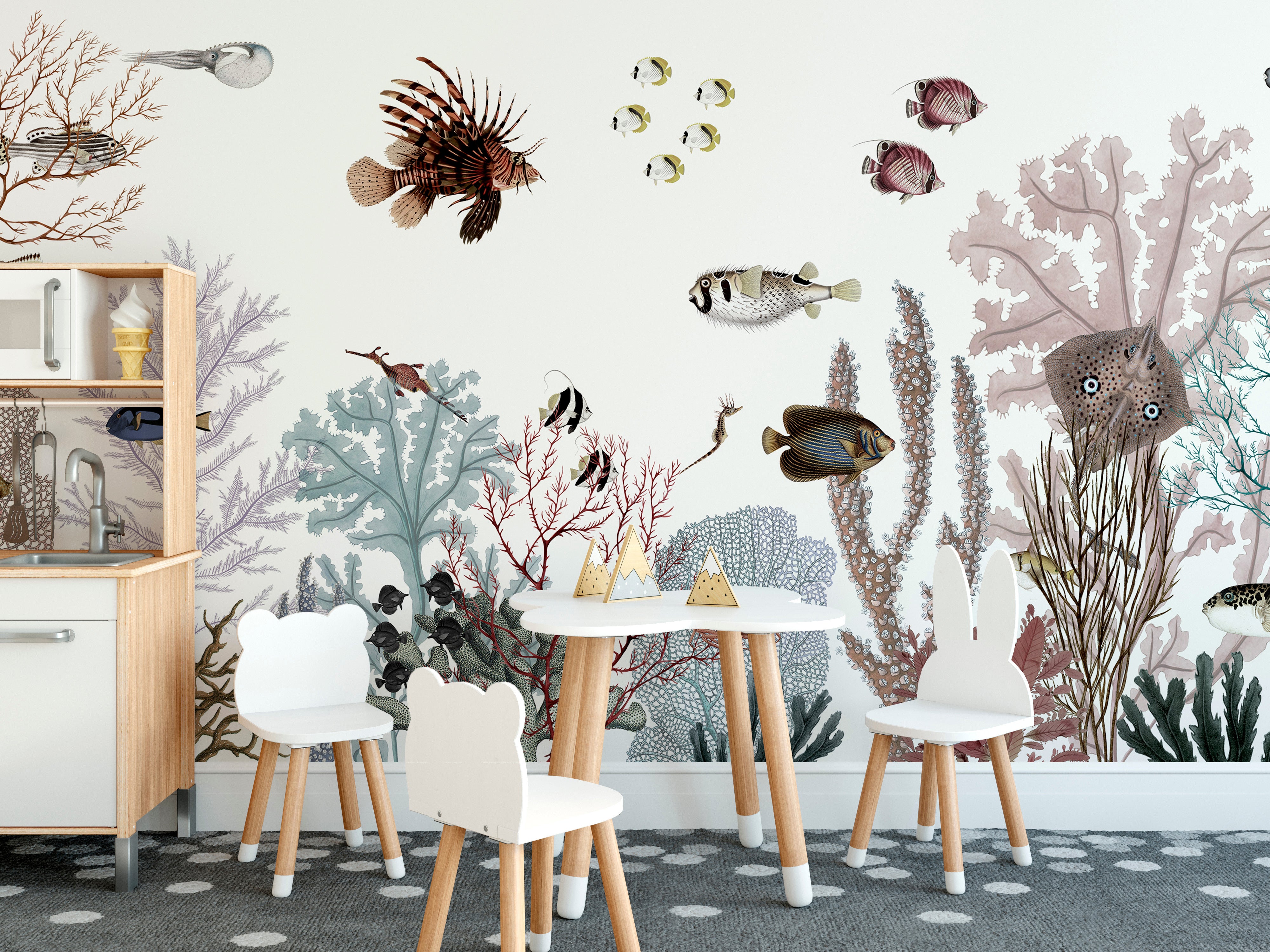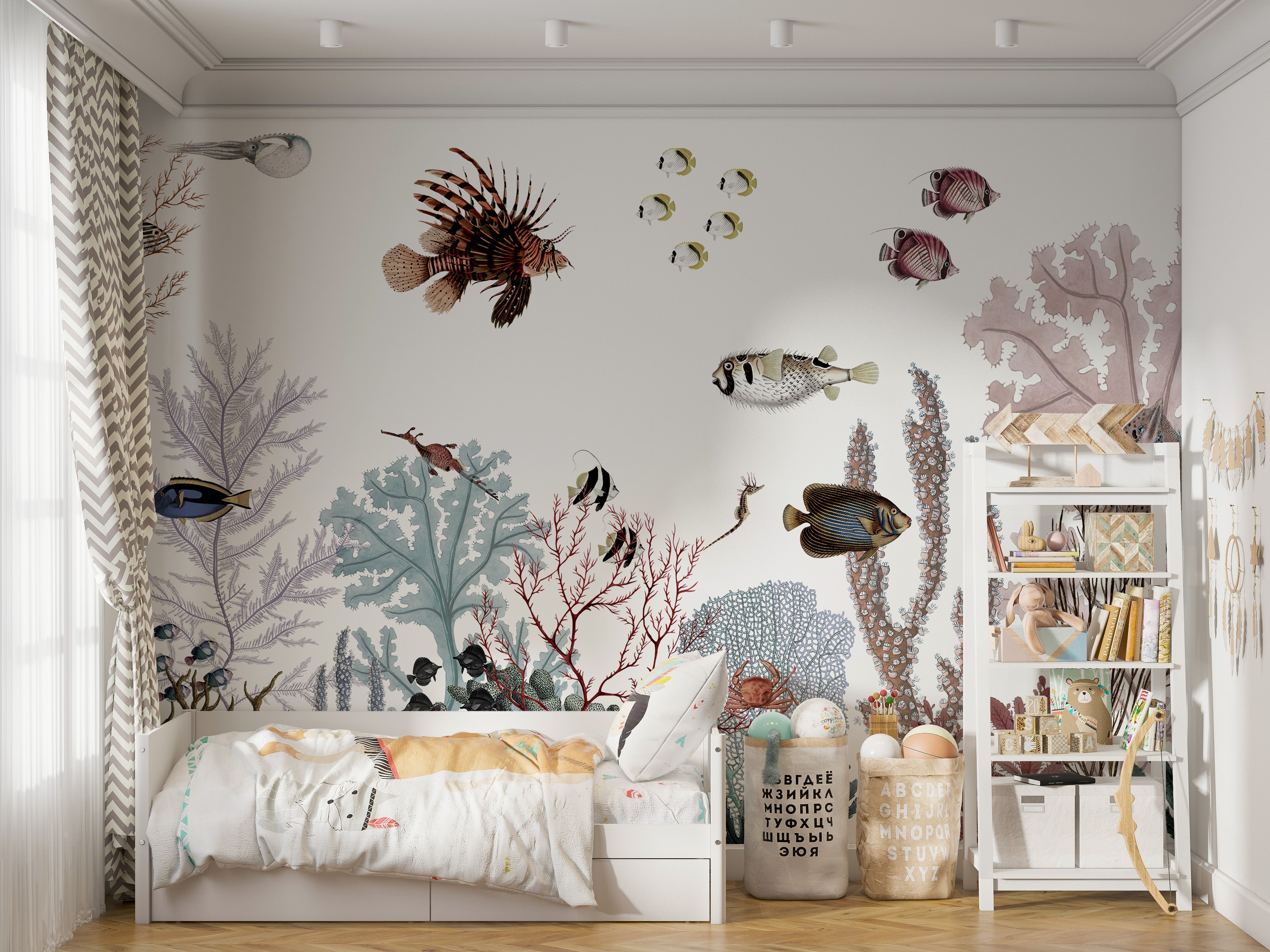 Removable wallpaper with colorful reef design