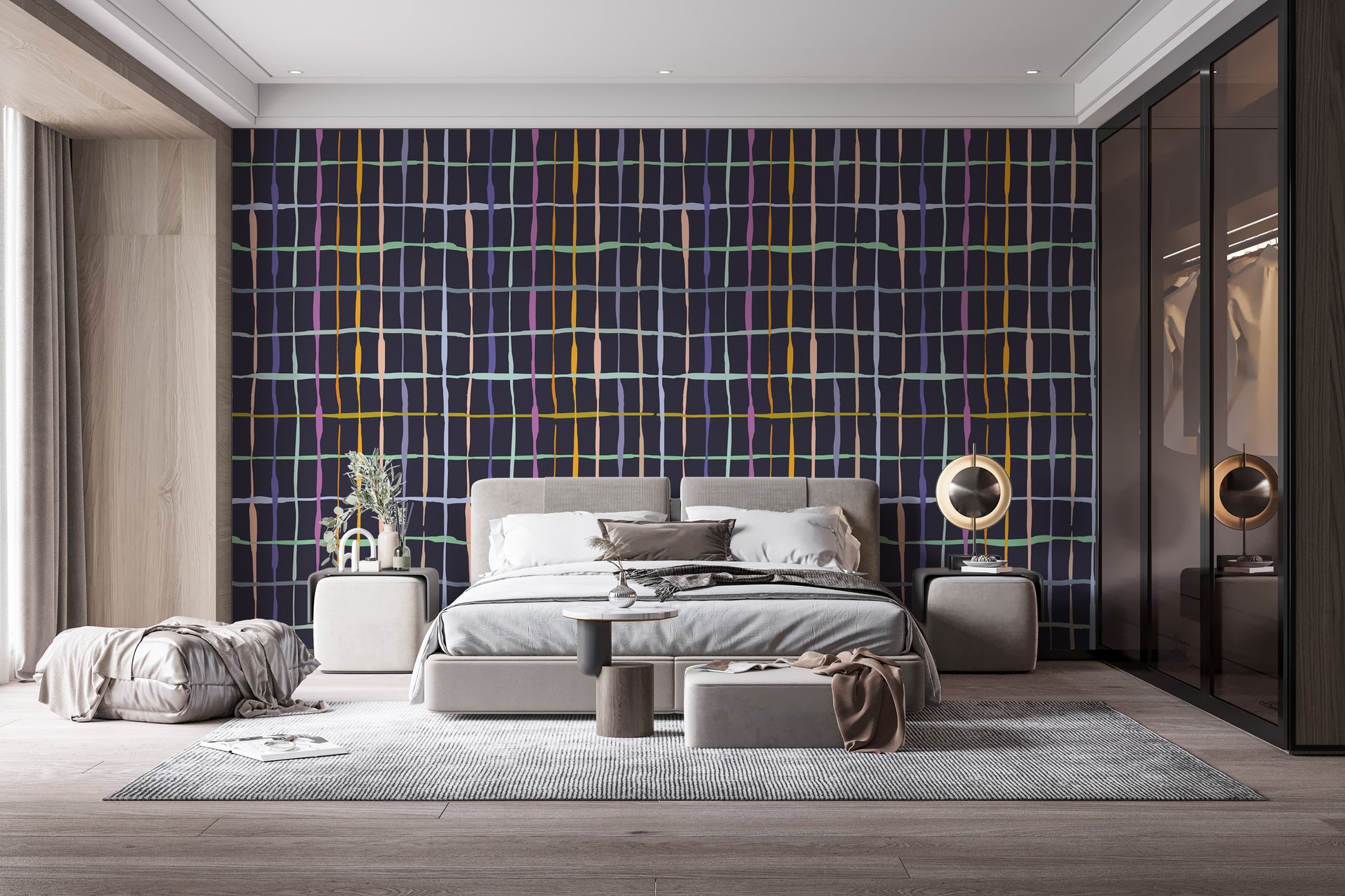 Check out our colorful, bold, handdrawn lines wallpaper and dare to be different. This colorful wallpaper is created from a bold overmark of handdrawn lines, creating striking intersecting colours on your wall. It is a visually striking and interesting design for anyone looking to make their interiors look dynamic through creativity. This, along with the handdrawn style gives the dazzling array of stripes a sense of movement and energy that is sure to catch your eye. This is a great wallpaper wall to bring color and personality into any room—perfect for expansive, graphic indigo walls like the one above. Shop today to avail free shipping on this new design.
