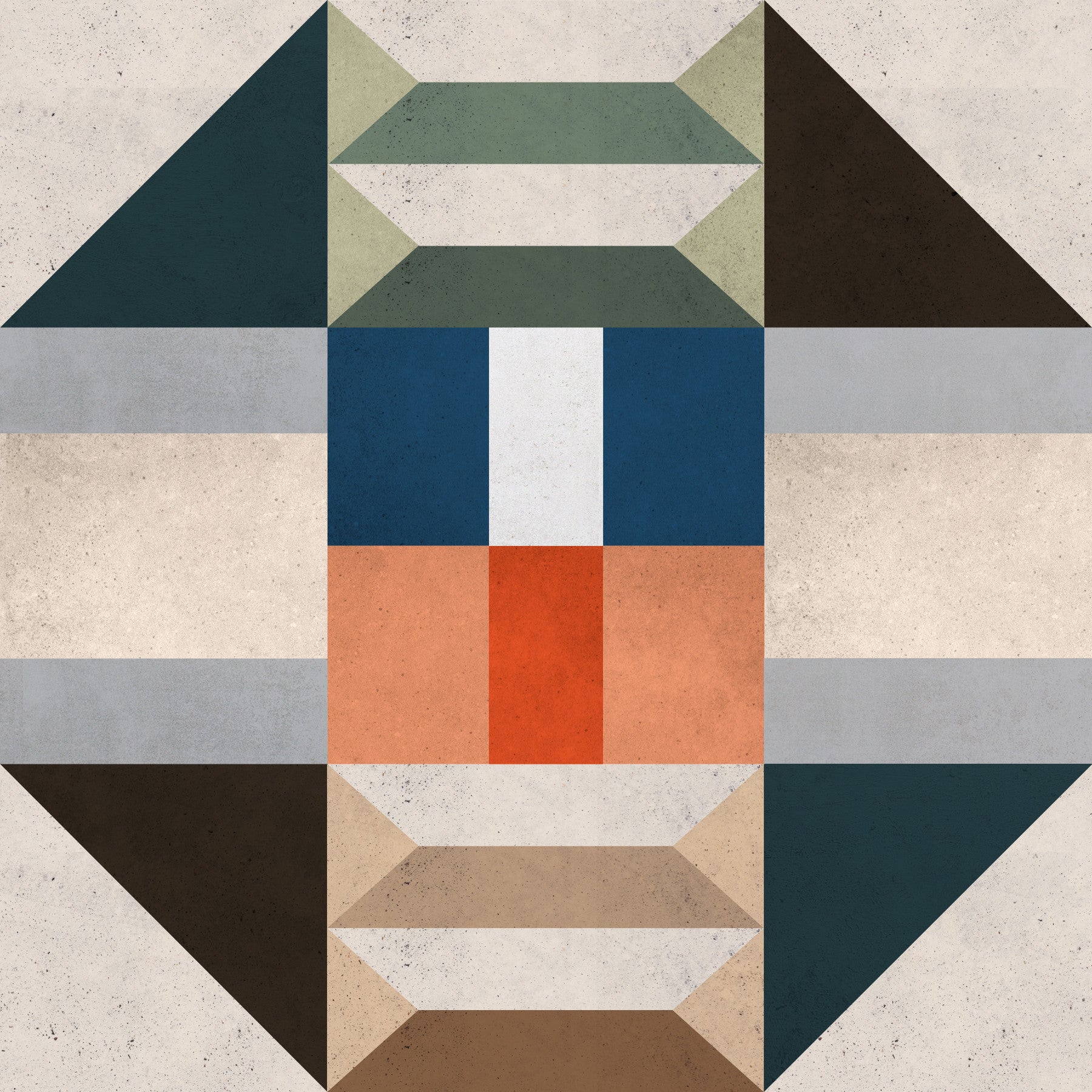 Inspired by industrial chic, this wallpaper features a bold geometric composition set against a textured concrete background. The color palette is a harmonious blend of earthy neutrals and deep blues, offering a balance of warmth and coolness. The design’s clean lines and geometric shapes provide a modern aesthetic that complements contemporary and transitional decor styles. The subtle variations in color and texture add depth, making the pattern visually engaging without being overwhelming. Perfect for accent walls or as full-room coverage, this wallpaper adds a stylish and sophisticated touch to any space. Its versatility makes it suitable for various settings, injecting an element of contemporary design into both residential and commercial areas.