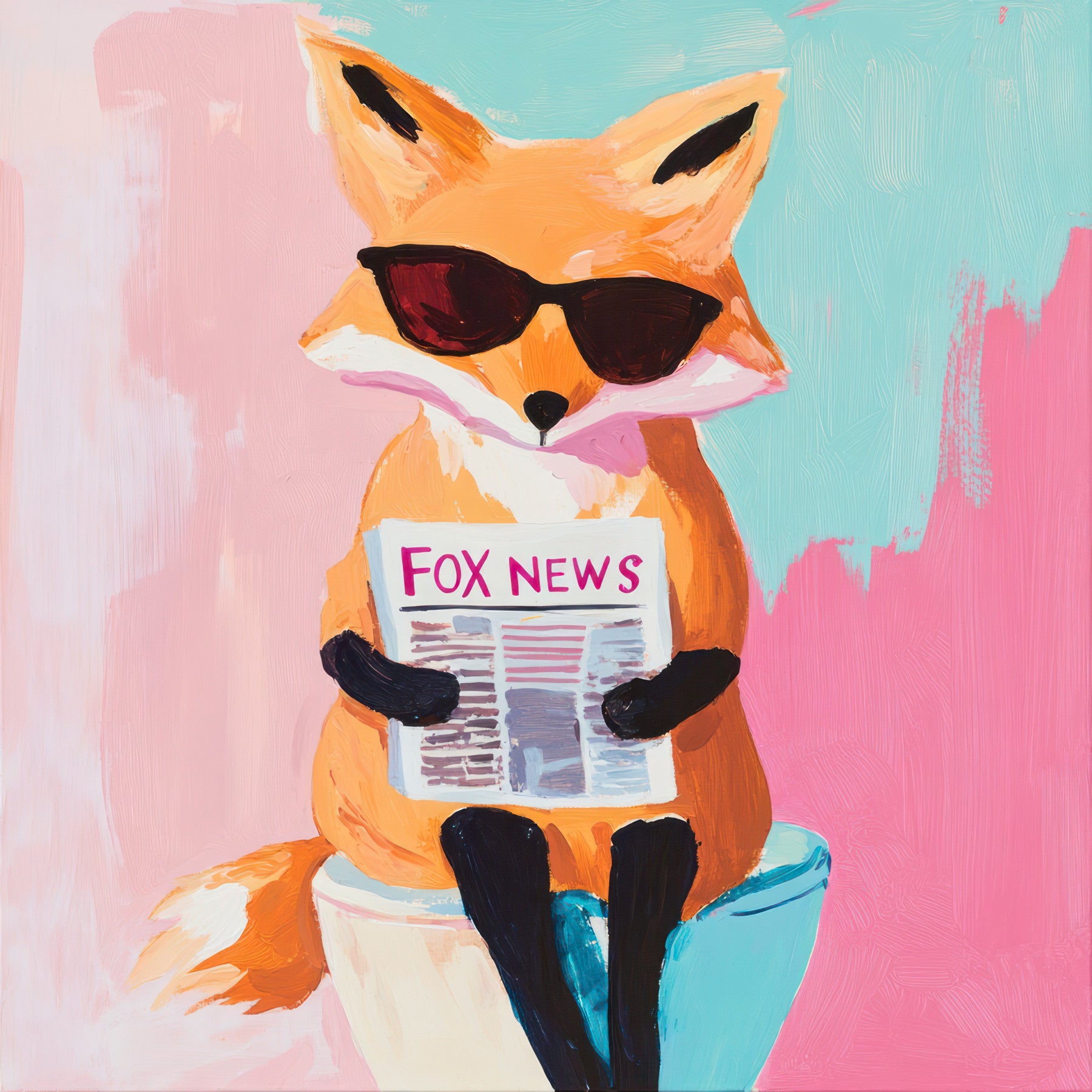 A quirky and humorous artwork featuring a stylish fox wearing dark sunglasses whilst casually reading a newspaper. Painted in bold, playful brushstrokes with a pastel pink and turquoise background, this piece blends contemporary pop-art charm with lighthearted character design. The whimsical expression and vibrant colours make it a perfect choice for eclectic interiors, modern spaces, or children’s rooms. Ideal for anyone who loves clever, animal-themed art with a sense of humour and a fresh, trendy vibe.