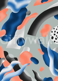 Elevate your interior spaces with this playful wallpaper for walls. A compilation of flowing shapes in coral, indigo, and monochrome tones creates visual intrigue. The design offers a modern twist and adds character. Ideal for a teen's room, a creative studio, or an entryway, it brightens any space. Its abstract design can pair with diverse interior styles, bringing a burst of color and energy to any room