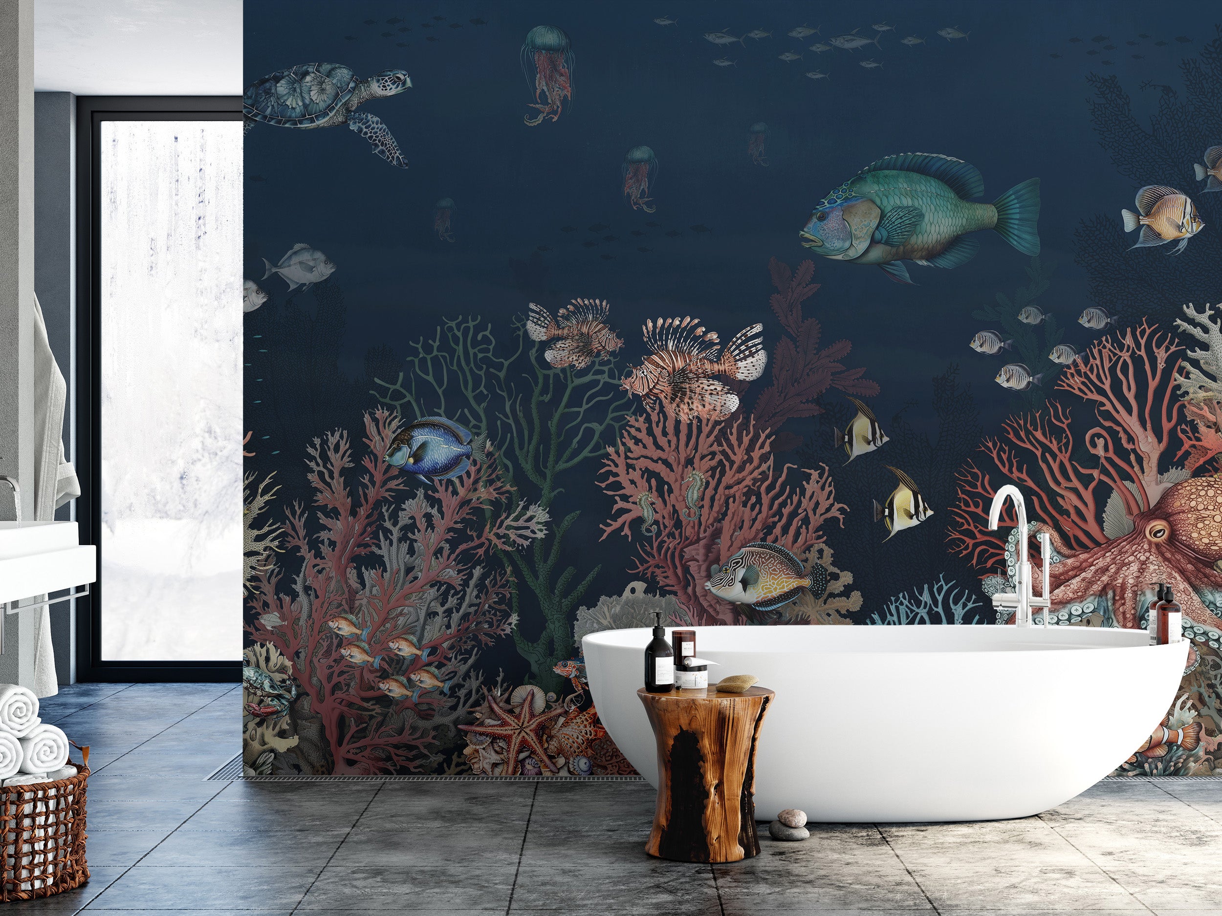 Dive into the deep blues of the ocean wallpaper, coral marvels wall mural, where nature's underwater palette bursts forth in vibrant hues and intricate patterns. Envision the silent dance of marine life amidst the coral's embrace, captured in an awe-inspiring display for your wall. Each glance reveals a hidden creature, from the cautious clownfish to the majestic sea turtle, gliding through this aquatic tapestry. Perfect for the avid explorer or the dreamy sea lover, this mural beckons viewers on a visual journey through the ocean's depths. Bring the mysteries of the ocean's heart right into your living quarters, without the need for tanks or diving gear. The coral marvels wall mural is more than a mere adornment it's a portal to the wonders beneath the waves.