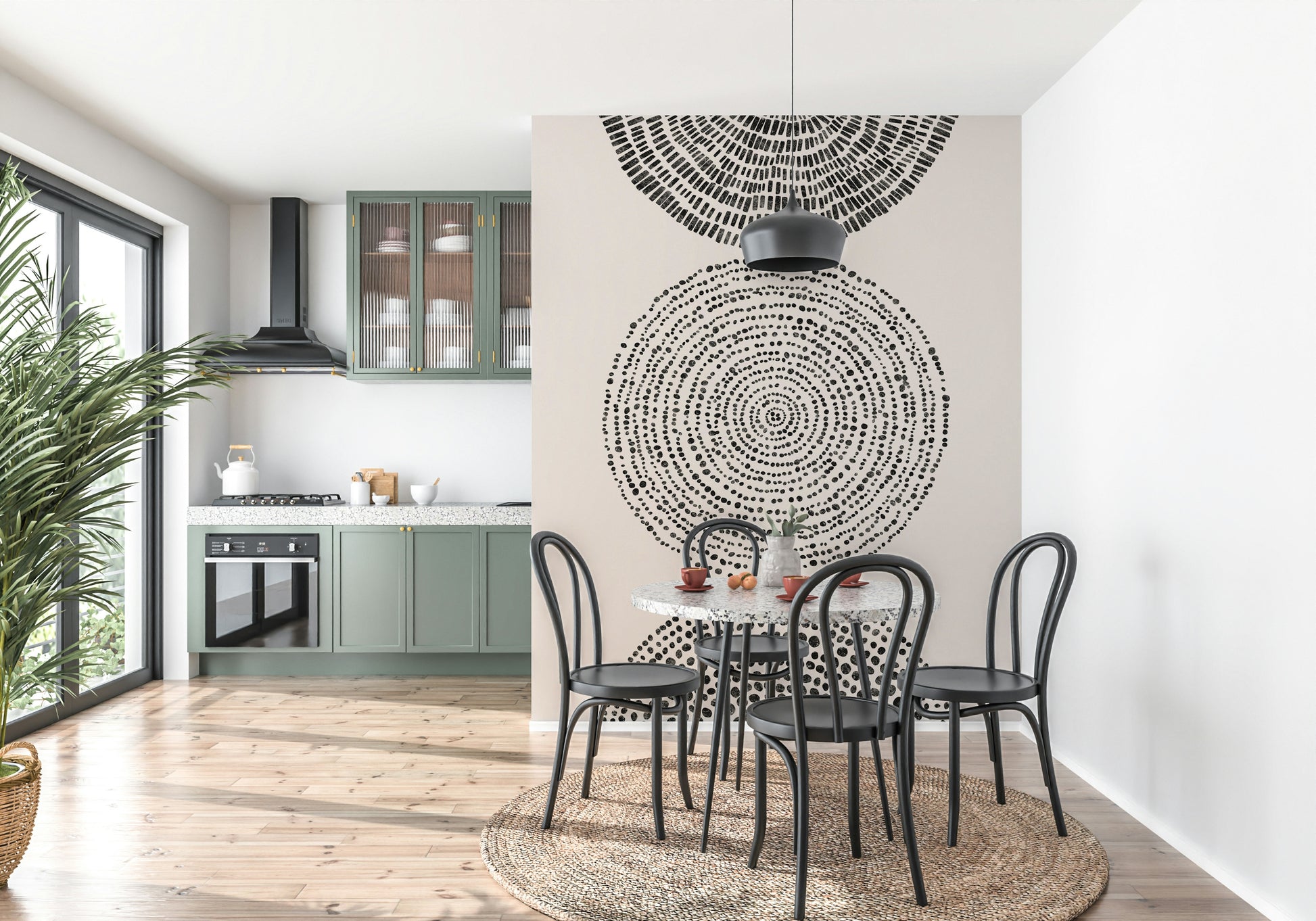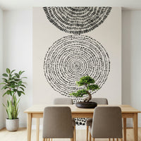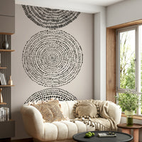 Transform your walls with the captivating 'Cosmic Echoes' wallpaper for walls. This striking design features a series of concentric shapes, each rendered in varying densities of black speckles and strokes against a creamy beige backdrop. Its minimalist aesthetic and monochromatic palette create a sophisticated, modern look that complements a range of interior styles. Introduce depth and visual interest to your living room, bedroom, or hallway. The design's serene and abstract nature makes it an ideal choice for creating a calming, yet stylish focal point, enhancing the overall ambiance of your space with its unique charm.