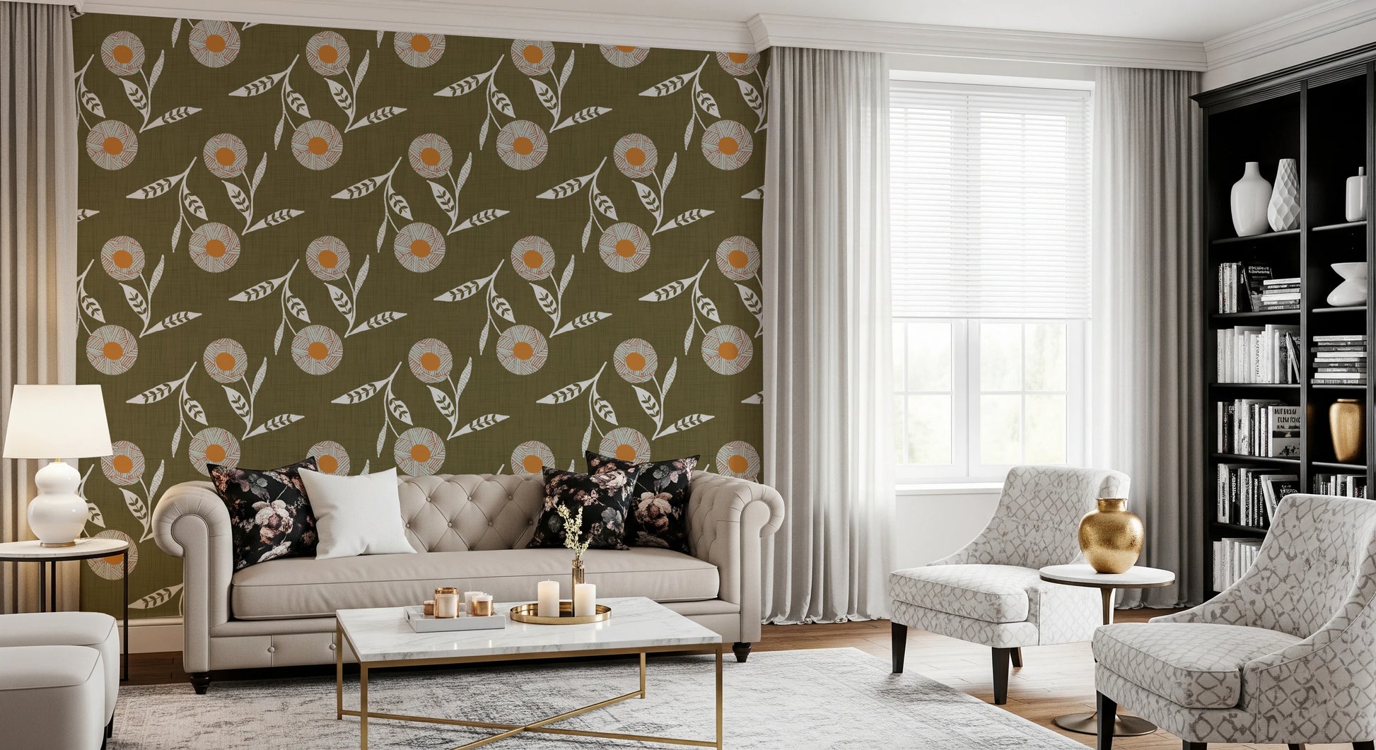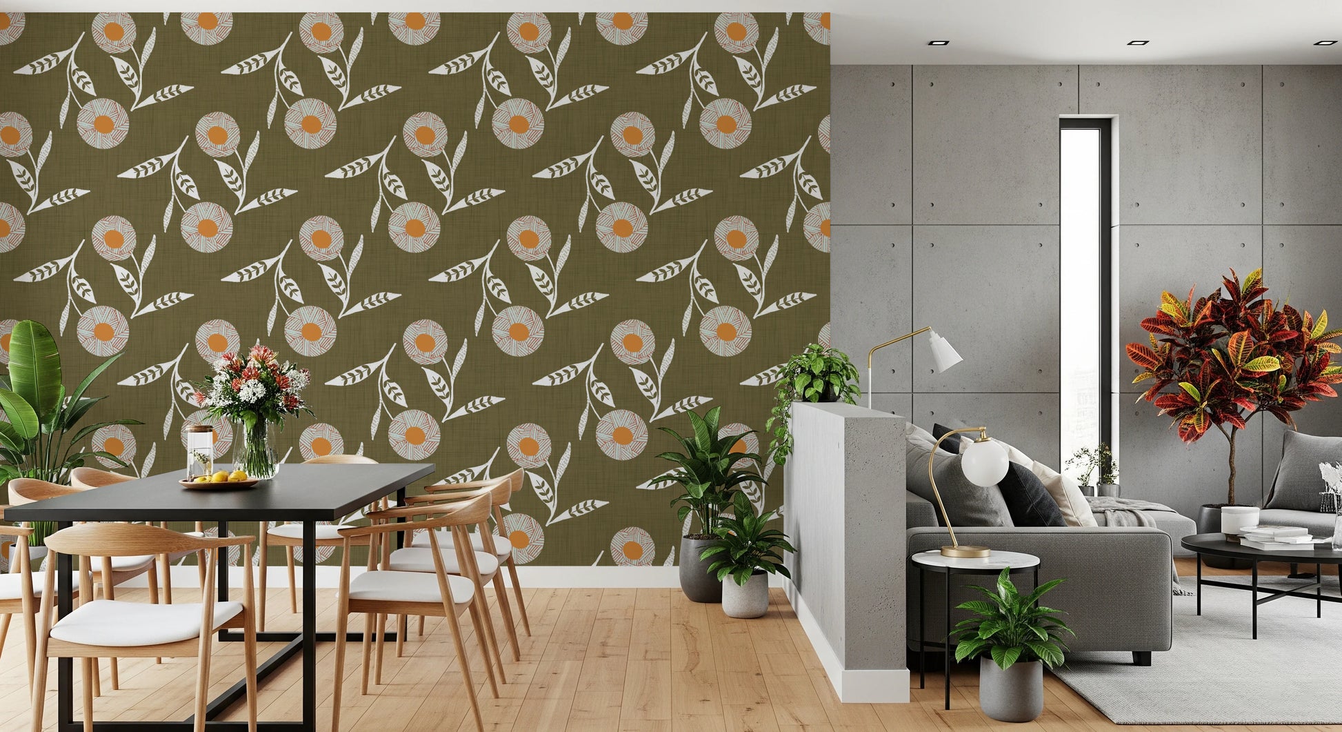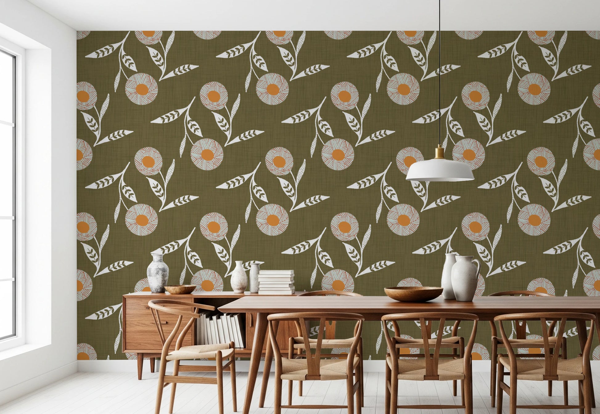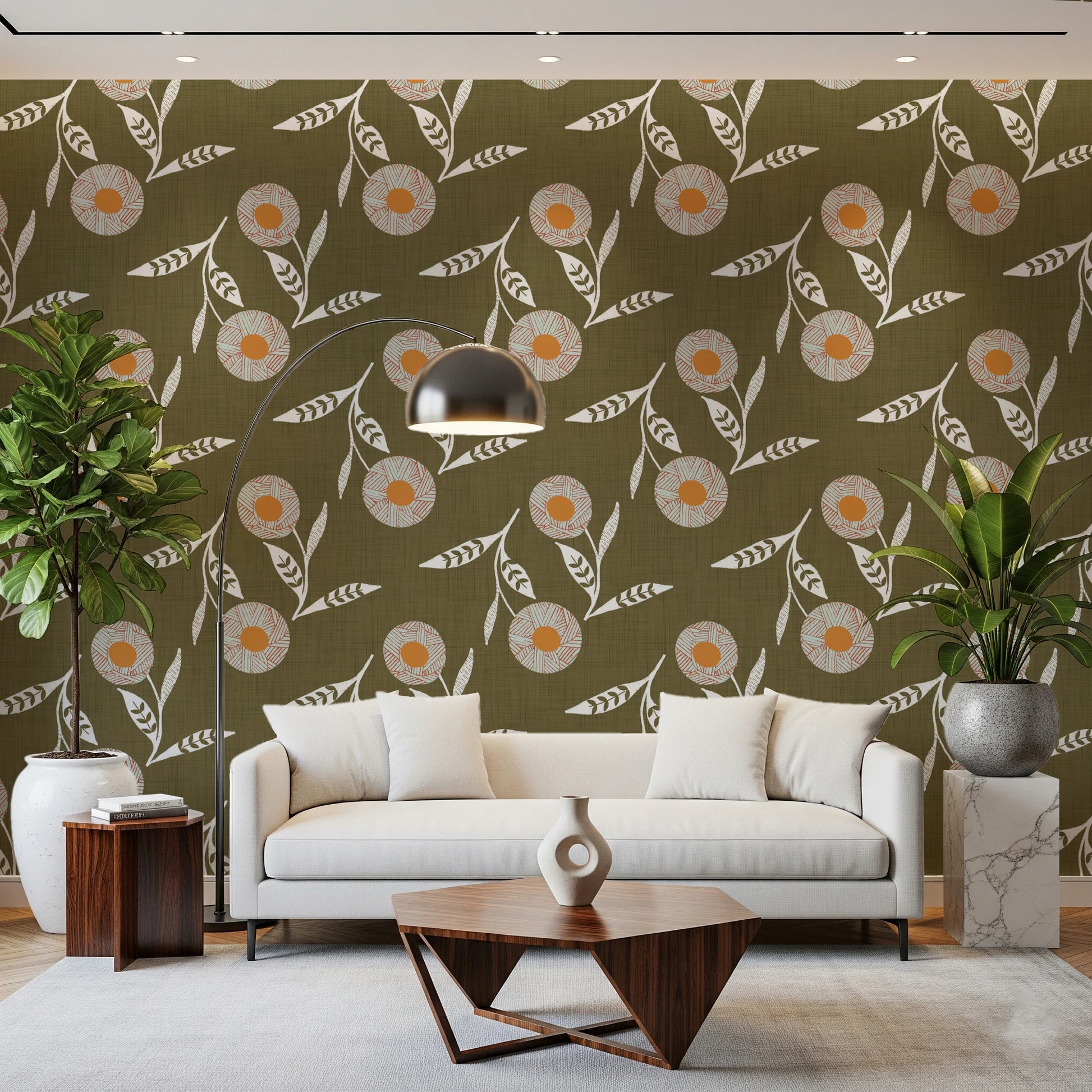 Cozy Scandi Flower Earthy Olive - Craft Botanical Wallpaper⁠