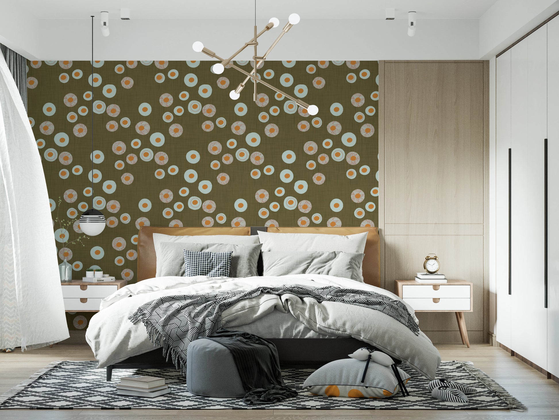 Cozy Scandi Folk Dot Floral Earthy Olive - Craft Circle Wallpaper⁠