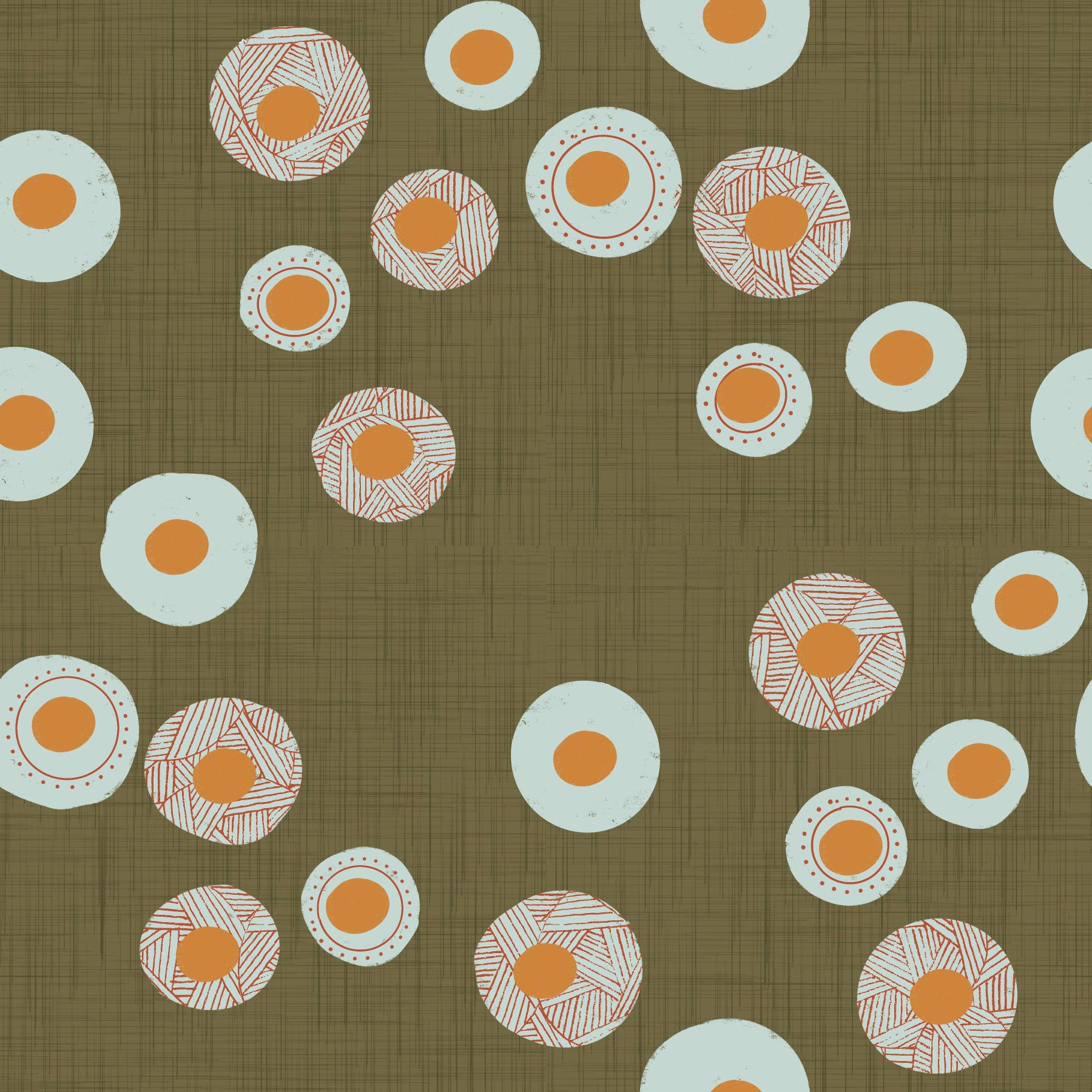 Transform your space with the inviting charm of "Cozy Scandi Folk Dot Floral Earthy Olive - Craft Circle". This wall covering evokes the warmth of a handcrafted textile, showcasing a delightful pattern of stylised floral motifs arranged in whimsical circles. The colour palette features a grounding earthy olive background complemented by soft muted blue and vibrant tangerine accents. Dotted borders and intricate linework within the circular designs add a touch of playful detail, reminiscent of traditional Scandinavian folk art. Perfect for creating a comforting and stylish atmosphere, this design brings a sense of hygge and artisanal beauty to any room, inspiring creativity and a connection to nature.