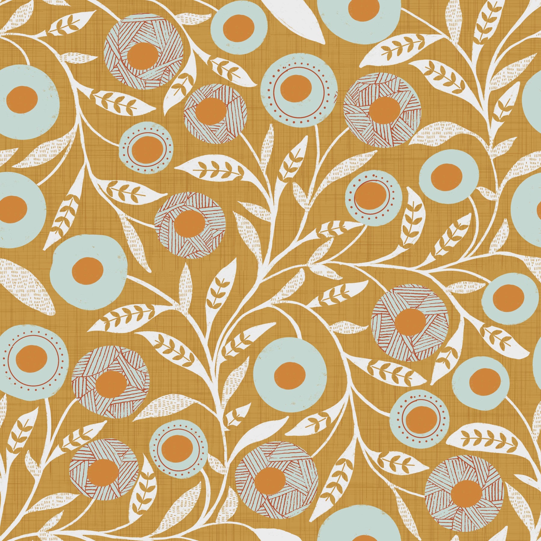 Cozy Scandi Folk Floral Honey Mustard - Craft Botanical Wallpaper⁠