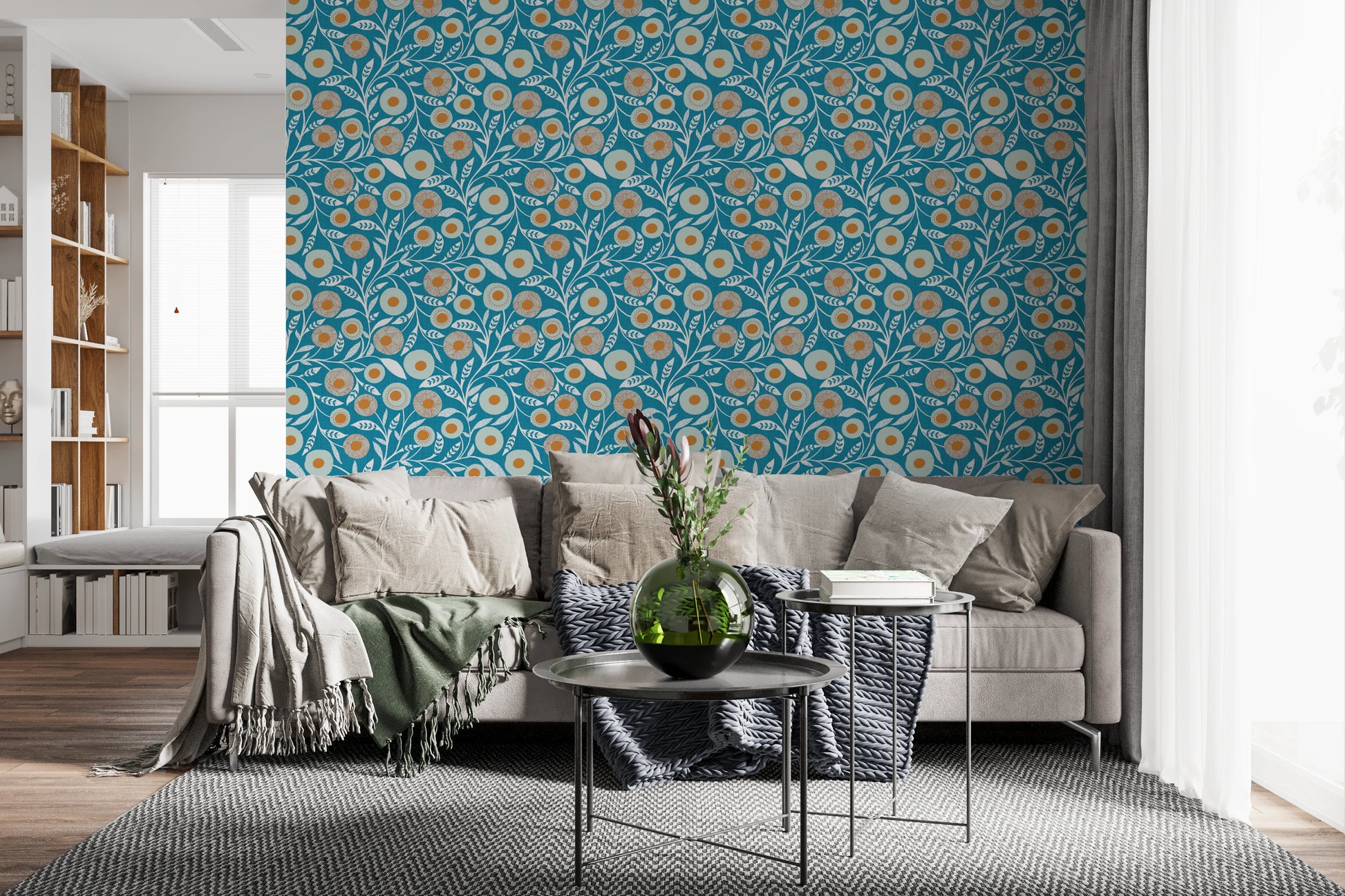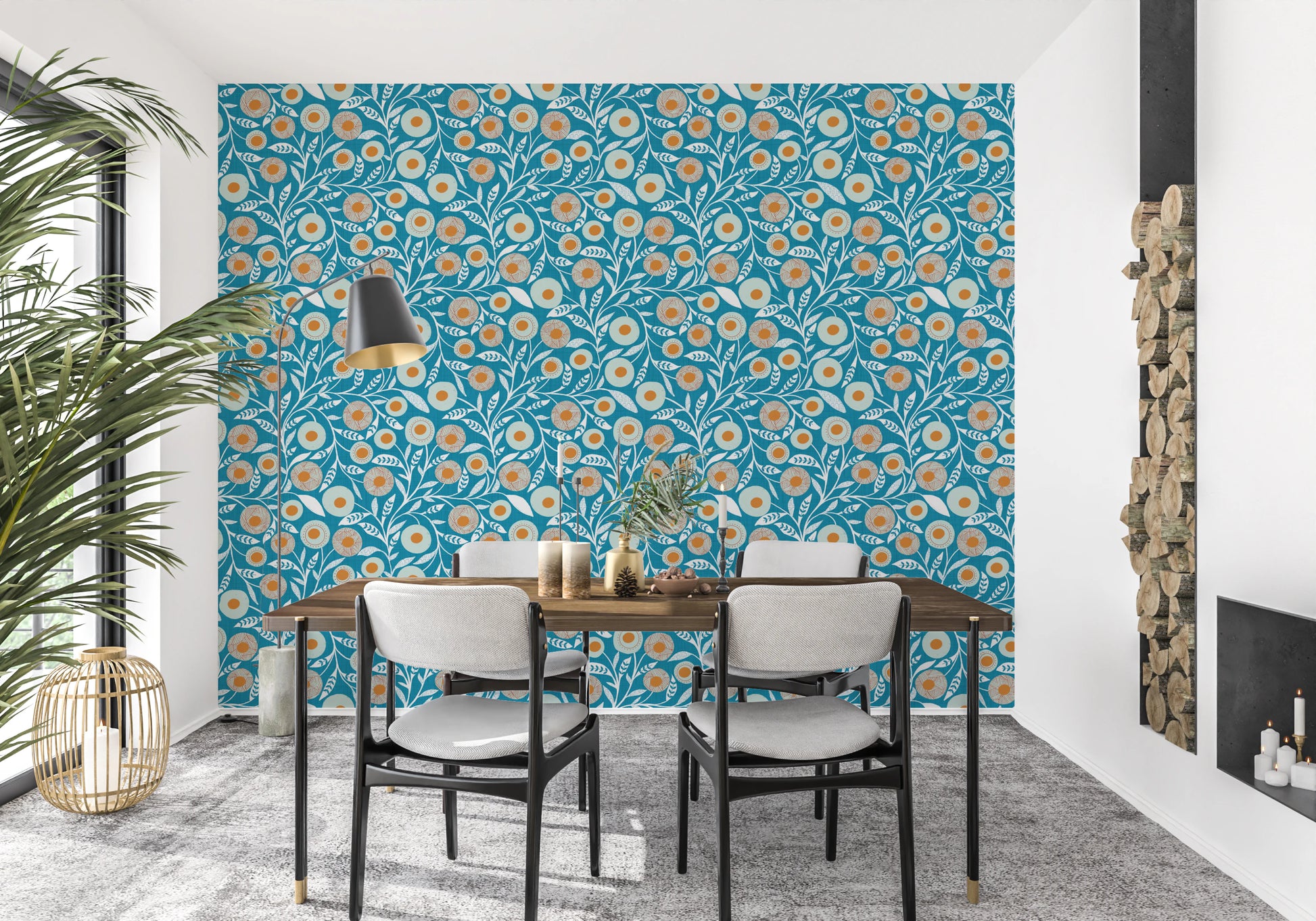 Embrace the warmth of Scandinavian design with this captivating wall covering. "Cozy Scandi Folk Floral" blends the simplicity of Nordic aesthetics with the charm of folk art. The design features stylised botanical elements, where delicate white leaves and artistic flower forms create a playful yet sophisticated atmosphere. The subtle texture in the backdrop is reminiscent of handcrafted textiles. The palette, dominated by a calming teal, accented with gentle earth tones, invokes a sense of peace and tranquillity. Transform any room into a cosy haven, reflecting a love for nature, craft, and timeless design.