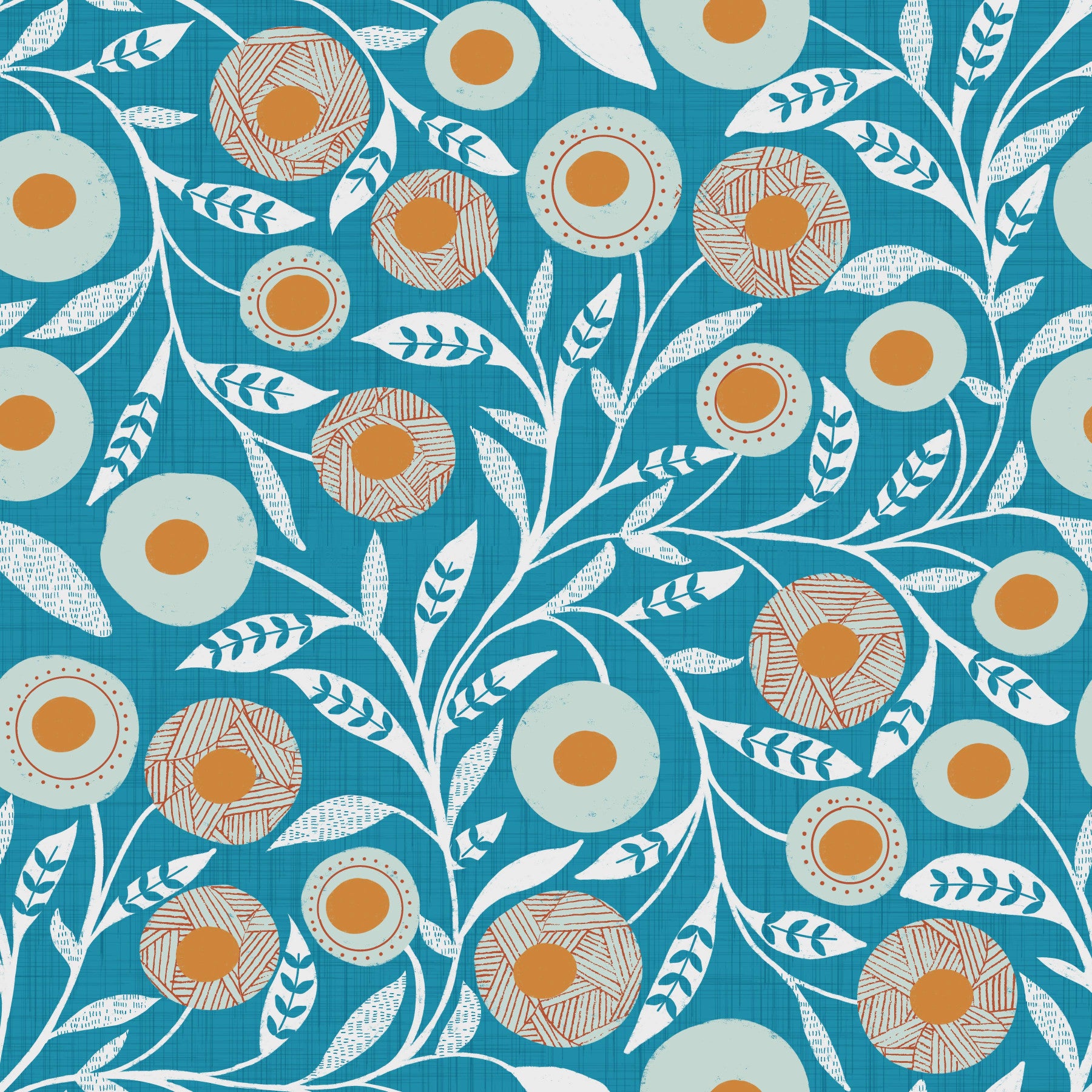 Cozy Scandi Folk Floral Nordic Teal - Craft Botanical Wallpaper⁠