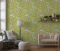 Embrace the warmth of Scandinavian folk art with this botanical wall décor. The design features stylised floral motifs in a charming olive green, accented by chartreuse undertones. Hand-crafted details add depth and character to the composition. Muted blues and subtle oranges give a vintage touch. This pattern evokes a sense of comfort and connection to nature. Perfect for creating a relaxed, inviting atmosphere in any room, from living spaces to bedrooms. The stylised blossoms and foliage create an artful and welcoming backdrop, perfect for adding a touch of simple sophistication to your walls.
