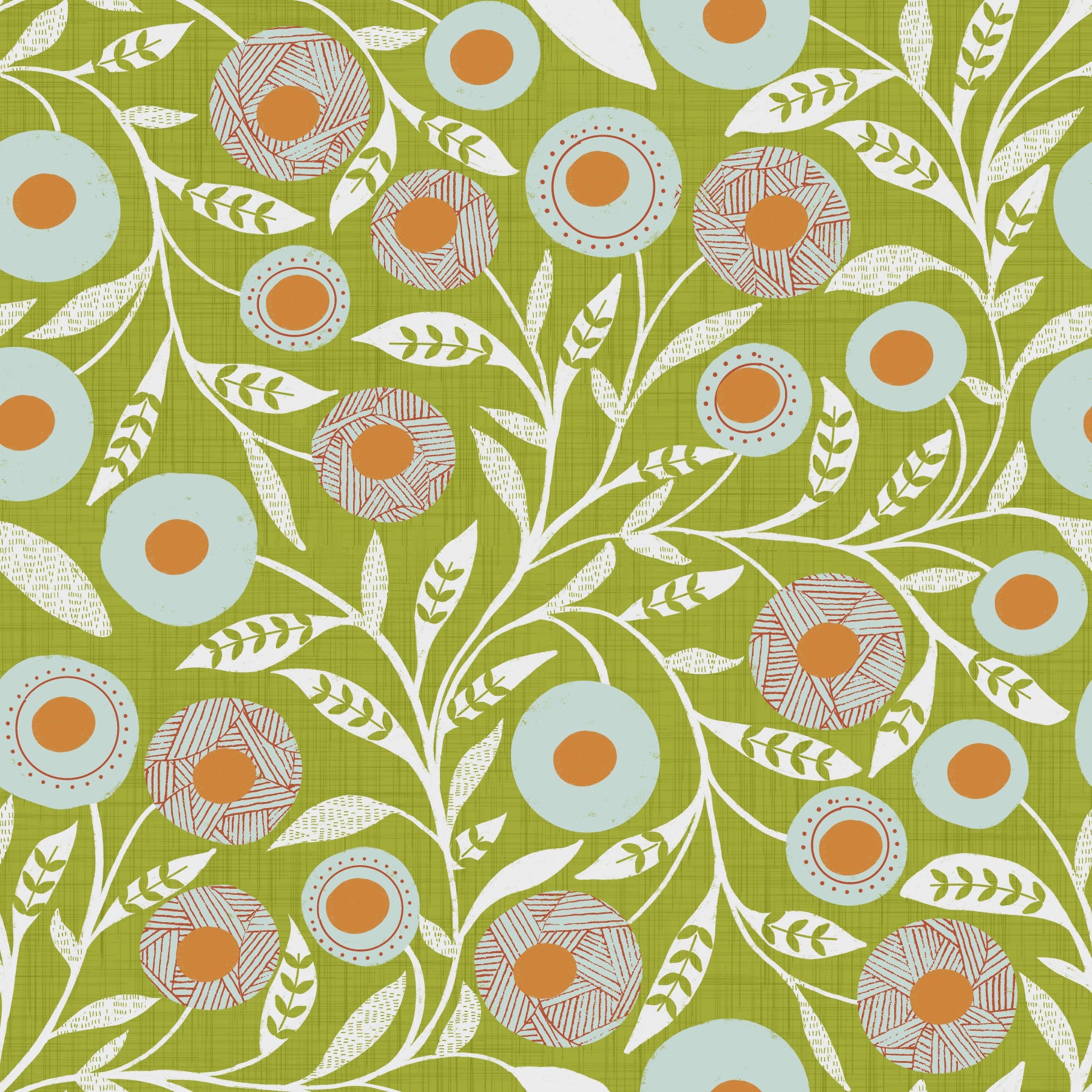 Cozy Scandi Folk Floral Olive Chartreuse - Craft Botanical Wallpaper⁠