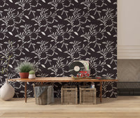 Cozy Scandi Folk Leaf Vine Charcoal - Craft Blender Wallpaper⁠