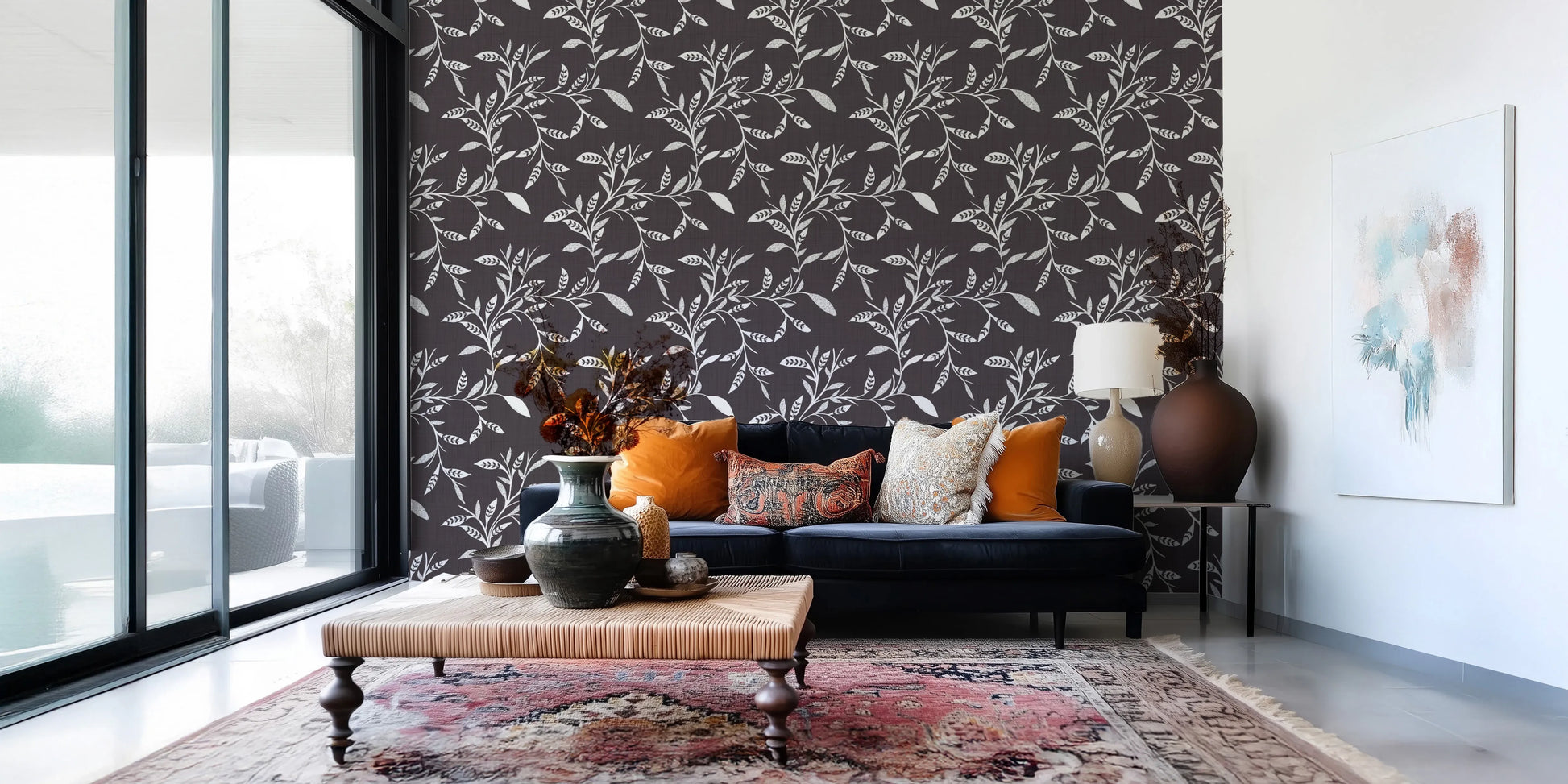 Embrace the tranquility of Scandinavian design with our "Cozy Scandi Folk Leaf Vine Charcoal" wall décor. This pattern intertwines a delicate folk art sensibility with a modern charcoal backdrop, creating a design that is both comforting and stylish. The graceful leaf vines, rendered in a soft, contrasting hue, evoke a sense of natural beauty, bringing the serene ambiance of the Nordic landscape into your space. Its texture provides depth and interest, blending traditional craftsmanship with contemporary aesthetics. This pattern adds a touch of understated elegance to any room. Perfect for creating a relaxing and inviting atmosphere in your home.