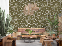 Cozy Scandi Folk Leaf Vine Earthy Olive - Craft Blender Wallpaper⁠