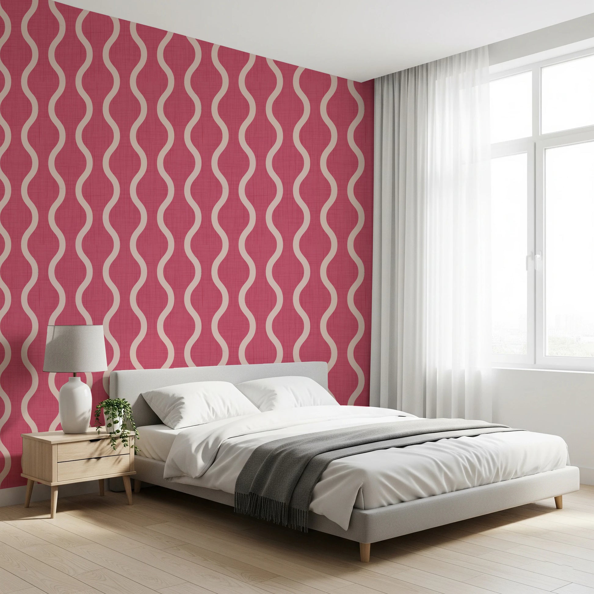 Embrace the warmth and simplicity of Scandinavian design with this charming 'Cozy Scandi Folk' wall covering. The 'Craft Stripe' features gentle, undulating waves of a soft, creamy hue gracefully flowing against a rich rose clay backdrop. The textured surface lends an authentic, handmade feel, evoking the spirit of traditional folk art. Perfect for creating a serene and inviting atmosphere, this design adds a touch of understated elegance and artisanal charm to any room. Its soothing colour palette and flowing lines instill a sense of calm, transforming your living space into a haven of hygge.