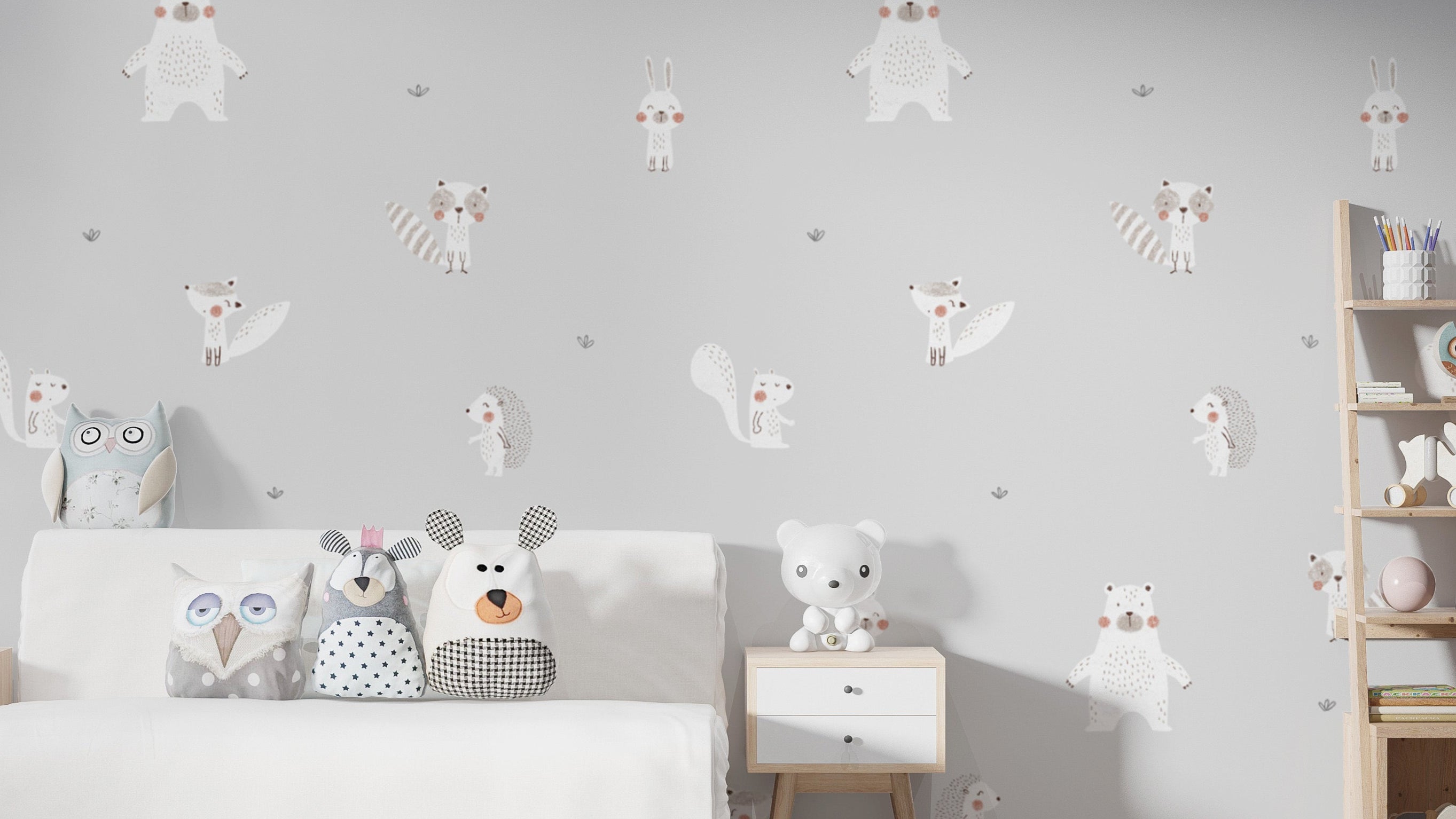 Introduce a touch of nature's charm into your baby's nursery with our Cream Baby Forest Friends wallpaper.  This delightful forest friends cream background wallpaper features an array of adorable forest animals on a soft cream background, perfect for fostering a sense of wonder and imagination in your little one. The high-quality print showcases intricate details of each animal, bringing the forest to life in a playful yet elegant manner. Its durable material ensures longevity, resisting wear and tear from little hands. This forest wallpaper is easy to apply, creating a seamless and captivating scene in any room. Ideal for both boys and girls, this wallpaper transforms your nursery into a cozy, animal-filled haven where stories and dreams thrive.