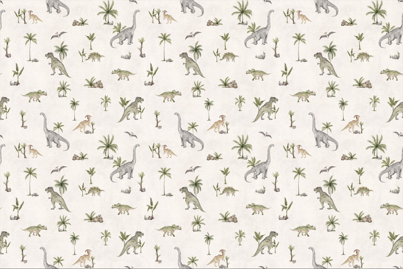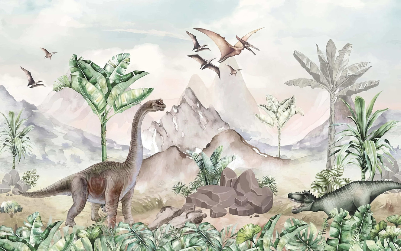 Relaxing dinosaur mural for modern kids’ decor.