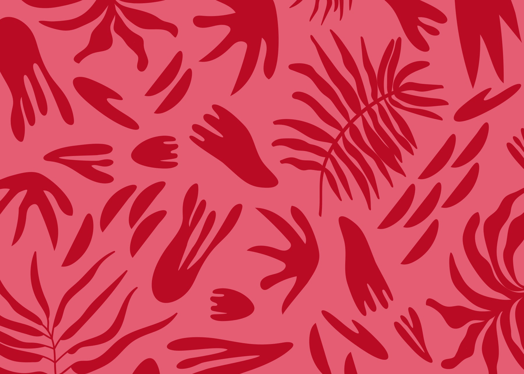 Crimson leaf wall mural with bold red fronds over a warm pink backdrop